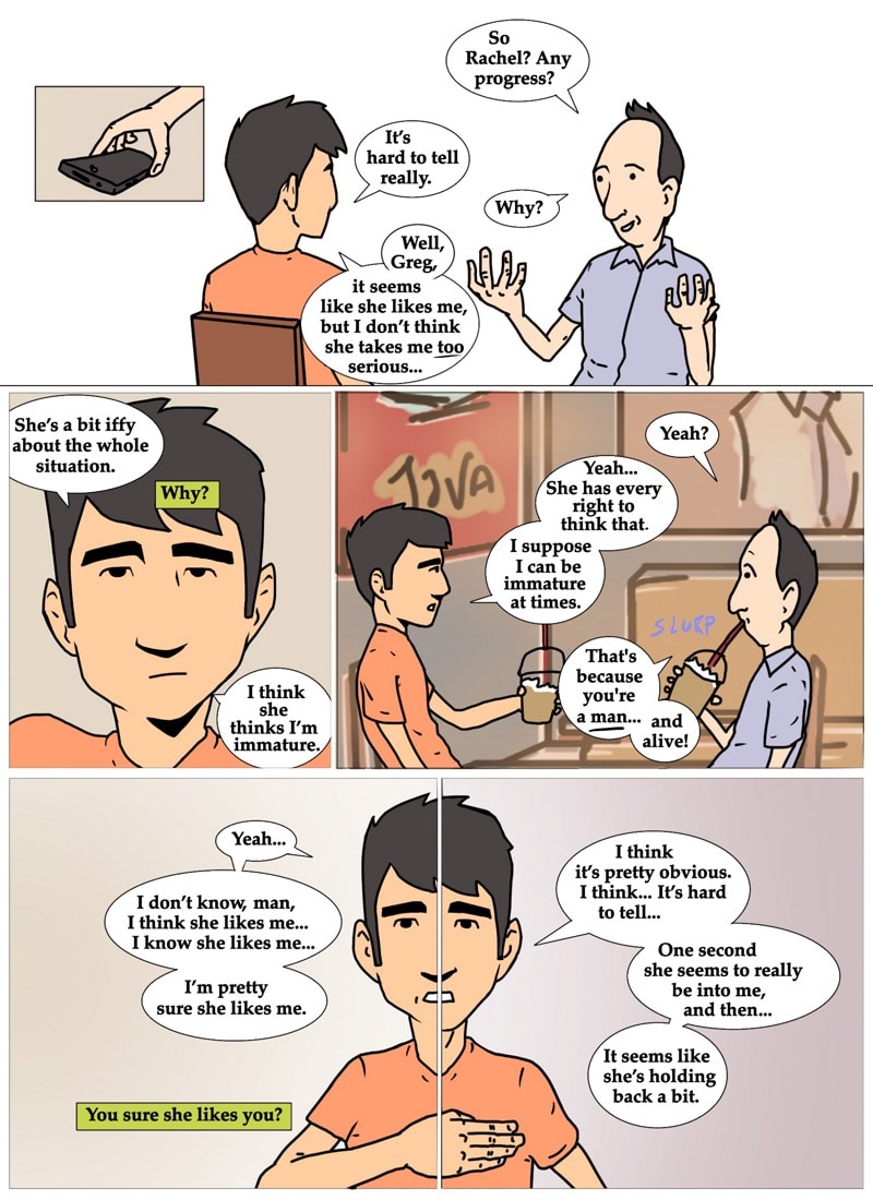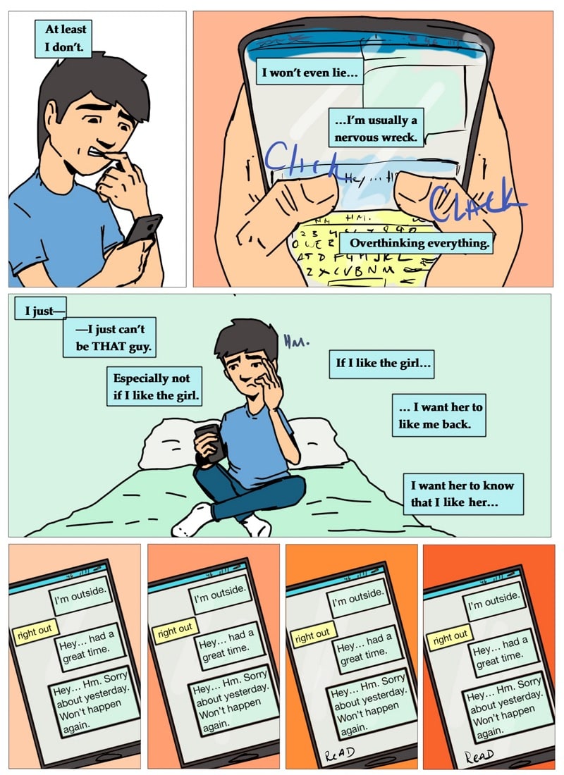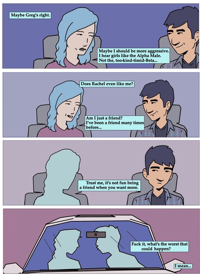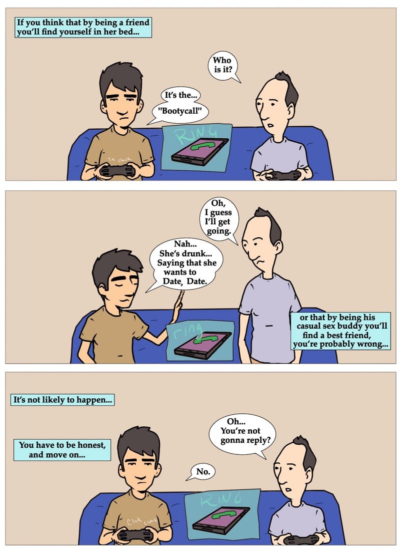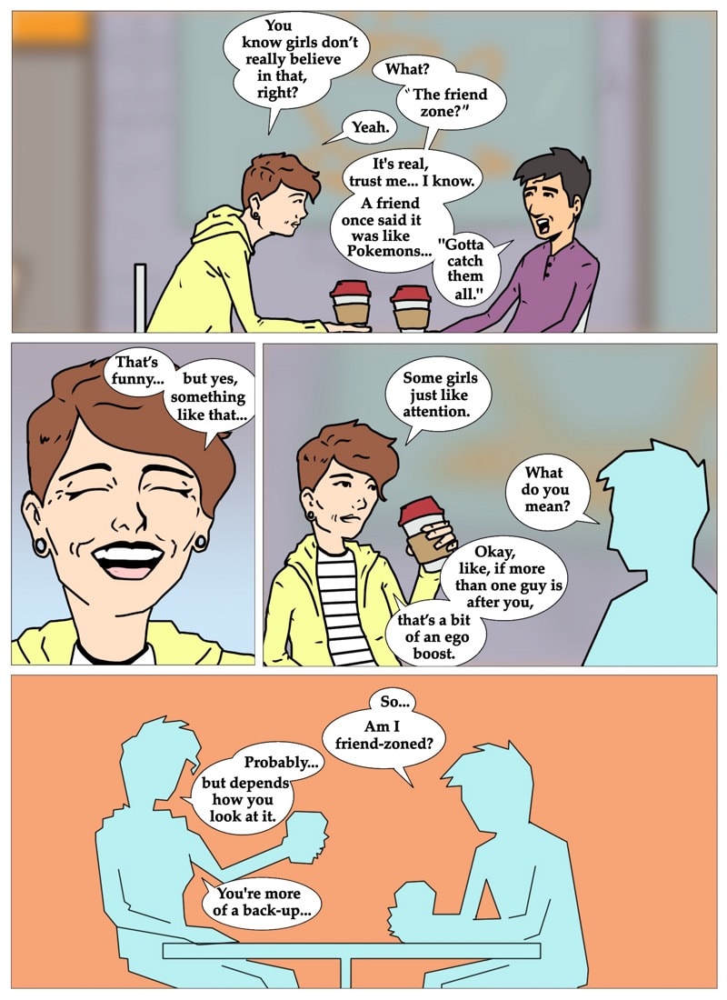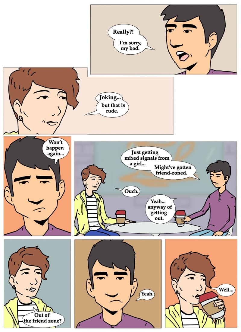 Gil contemplates the similarities of being just a friend and being in a friends with benefits relationship. written and illustrated by david chairez vitela
