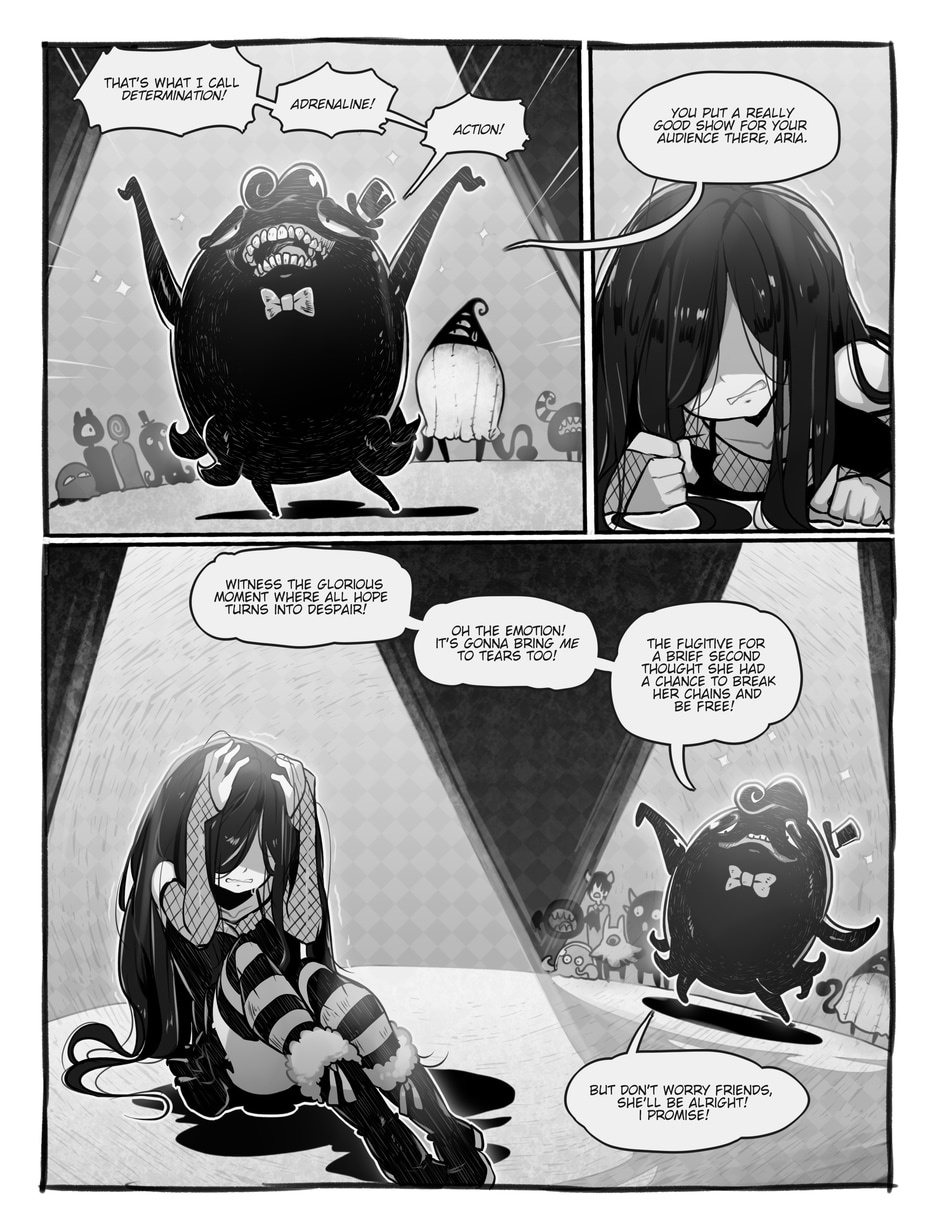 Girighet (or, Giri as he likes to be called) uses Aria as a demonstration for what he felt could be a good show for the audience ♪ Is this a cruel game? Was this all staged? Is it really that hopeless for her? Can't she do anything?