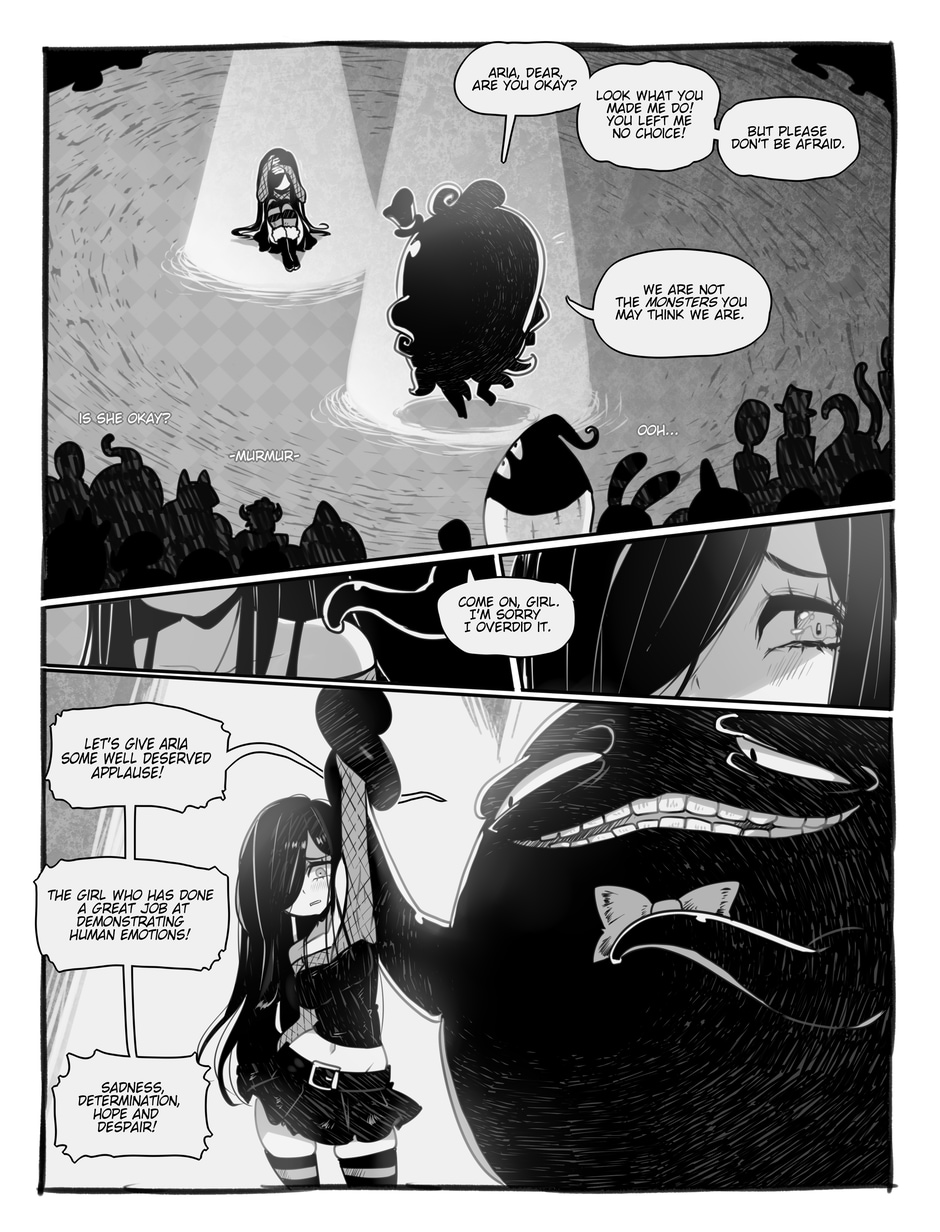 The story begins where Aria and Nicholas, very confused, meet Merfie, a monster that welcomes them to his home.