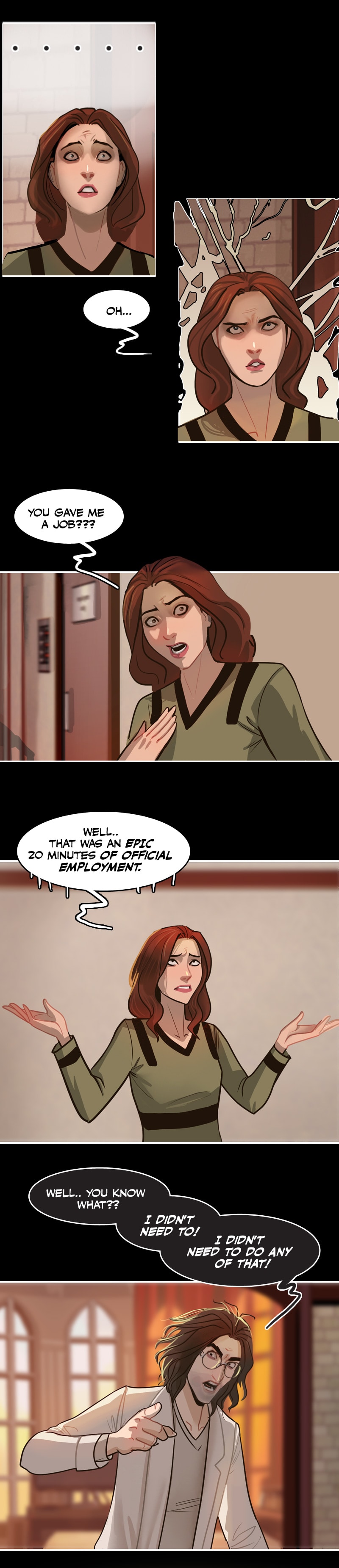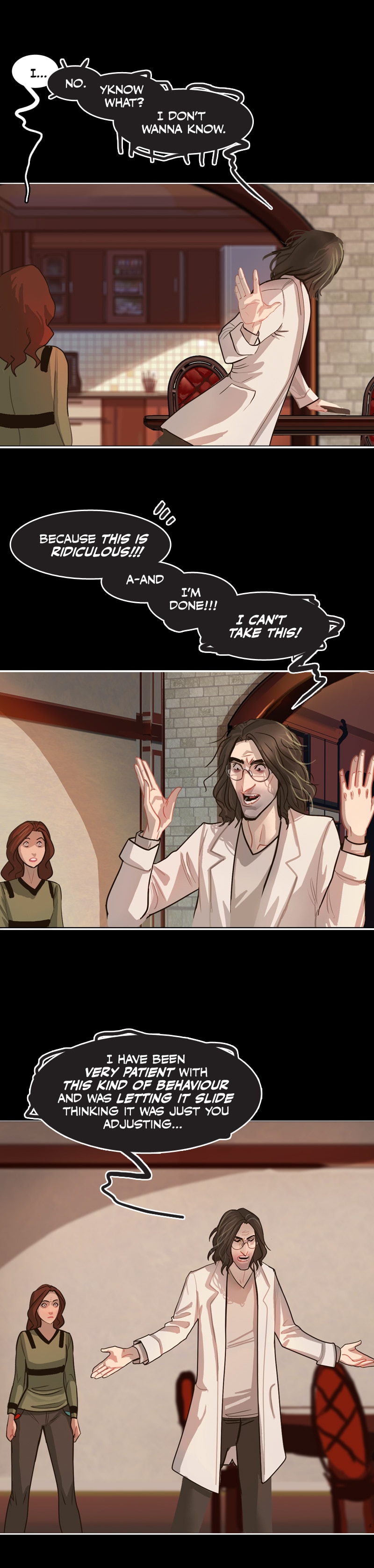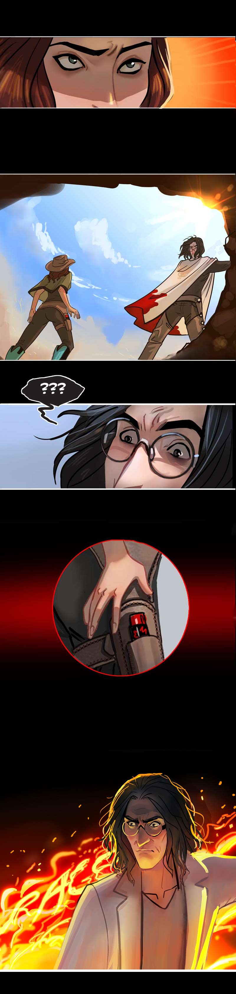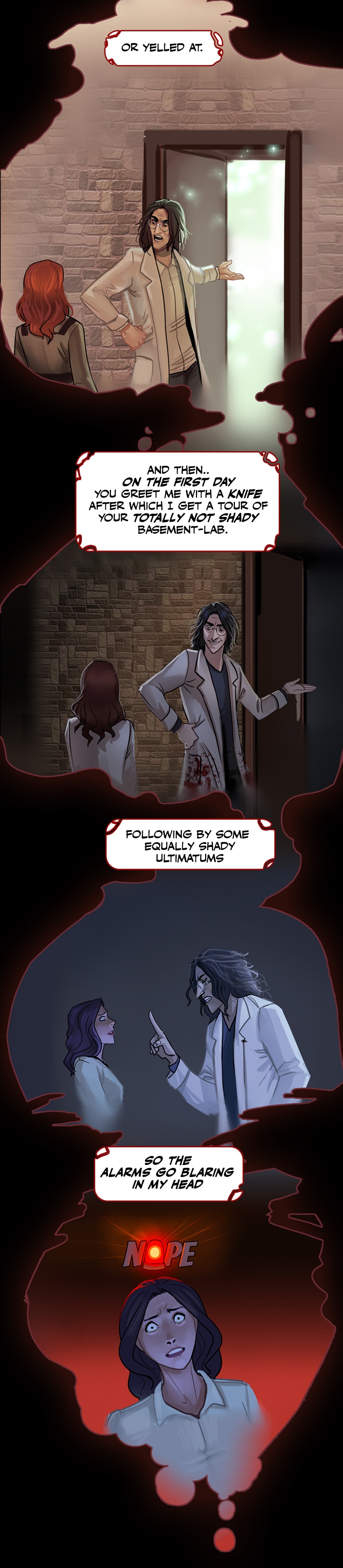 I have gathered enough clues in the comic that I decided long ago they aren't blood stains but instead are ketchup stains from his ketchup addiction and every coat has permanent stains. Ketchup is really hard to get out of white clothing. He probably quit trying long ago because he's a klutzy slob. 😆