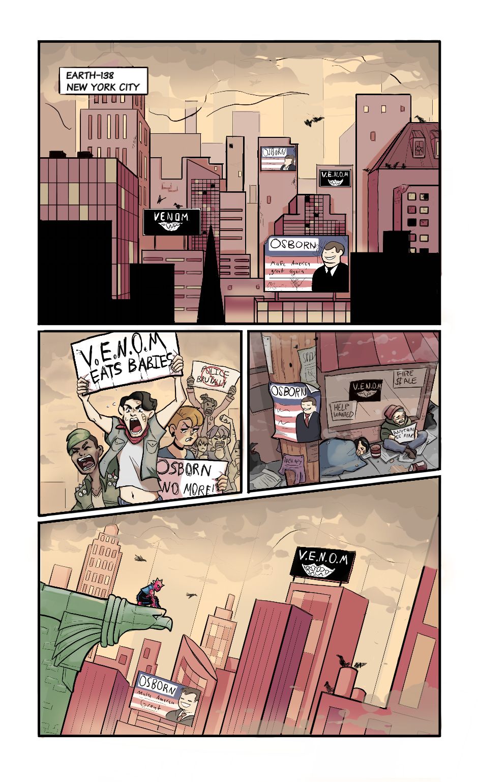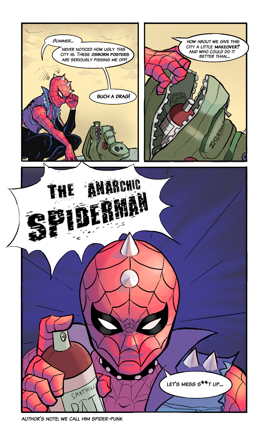 (Spider-Punk hates filthy New York. So he, "cleans" it up!)