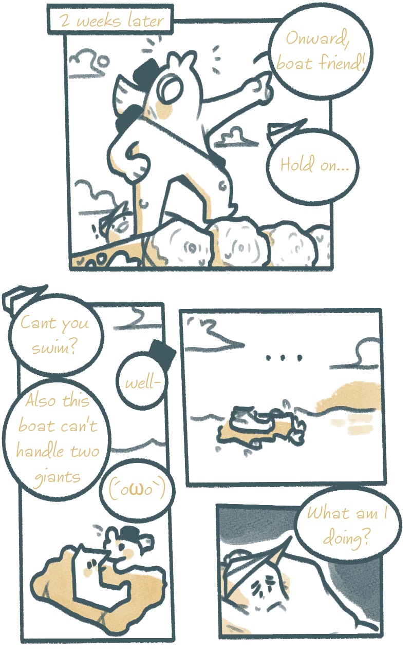 A giant ventures out to retrieve his friends lost weapon in a world of fantasy and warriors where they both learn the true meaning of pain and protecting the ones they love from true turmoil no matter what. No strict update time, but will try as quickly as possible. Time of production is about 1-2 days. Hope you enjoy! :D This is my first ever project so I hope you enjoy this just as much as I do!