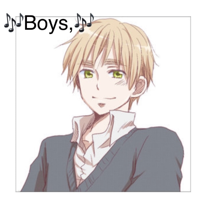 I wanted to make my own version of this tik tok I saw on YouTube but I didn’t want to bother downloading and making a tik tok account just for one thing so here’s this. (Also I didn’t draw the anime people, got them from google) The song: Boys by Charli XCX