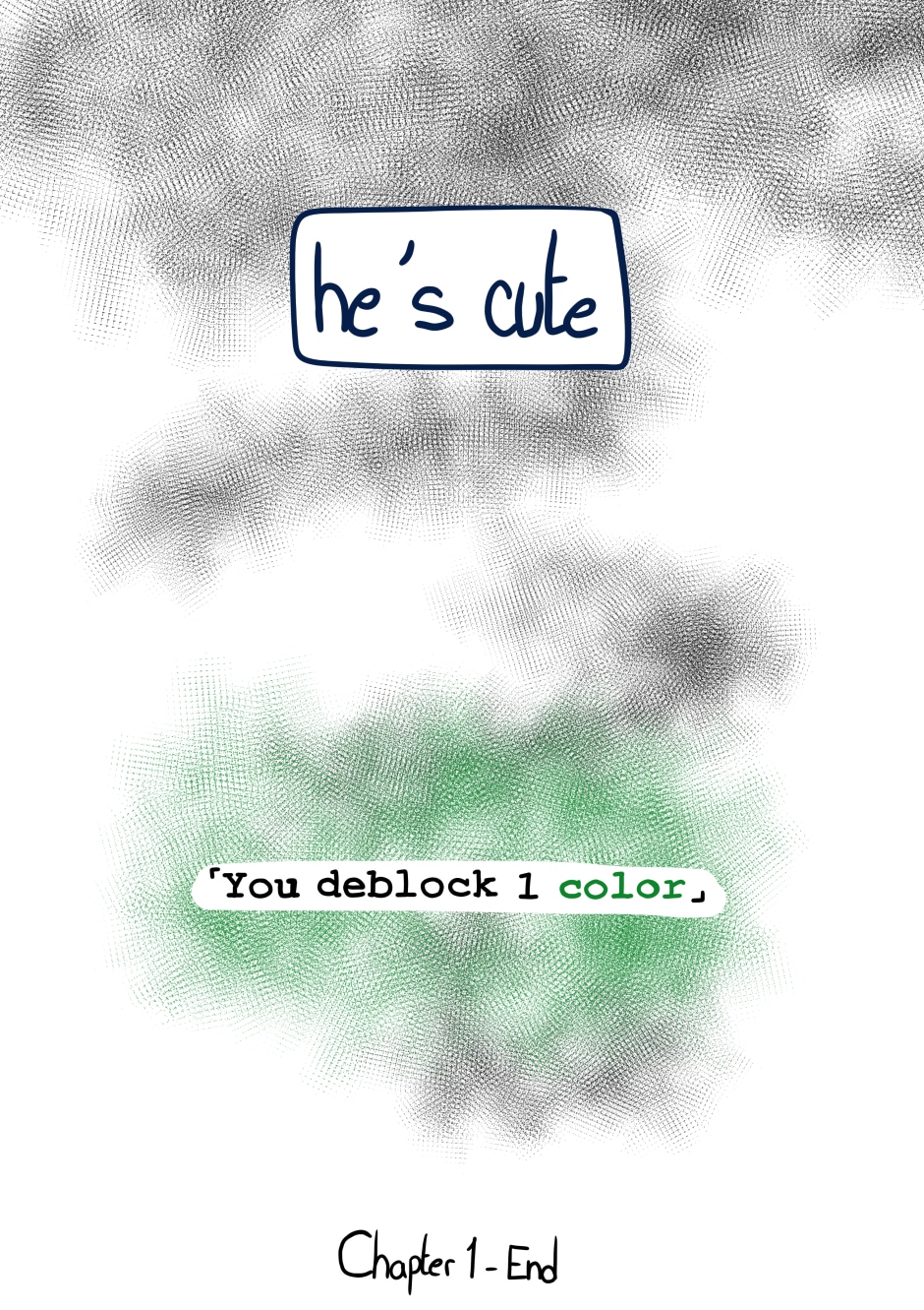 Aaaah j'ai adoré cette partie !! Ils sont vraiment trop adorable ! (Et je me tape des barres a cause de leurs expressions xD) C'est trop chouette l'idée de débloquer les couleurs, vraiment je suis fan !! Hâte de lire la suite *w*