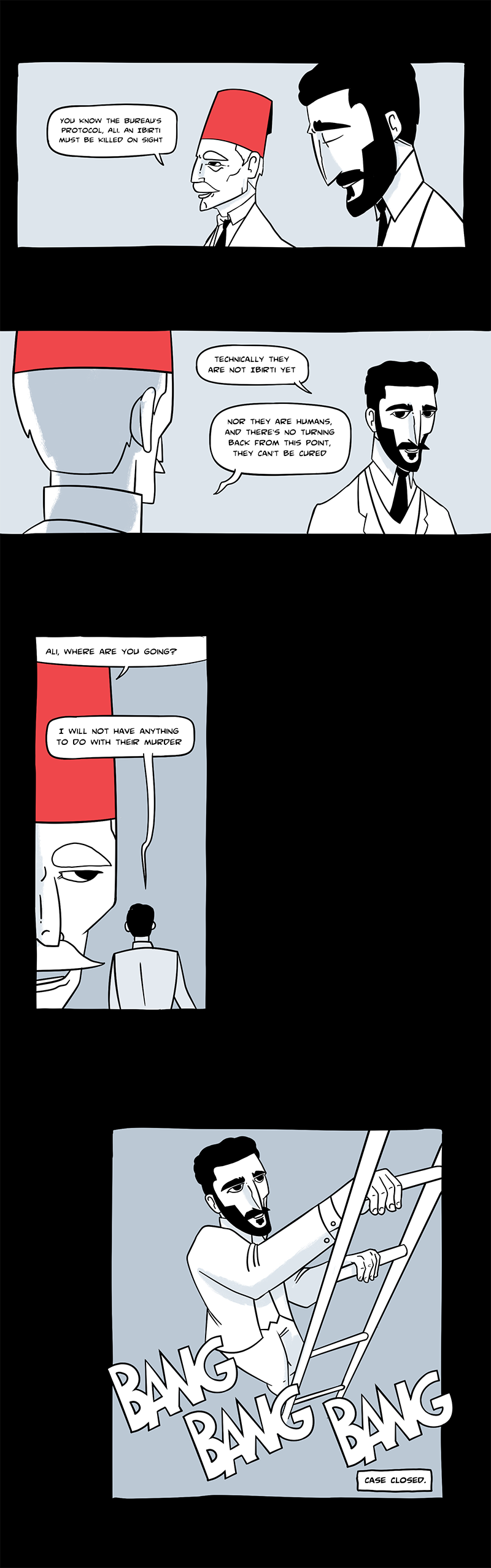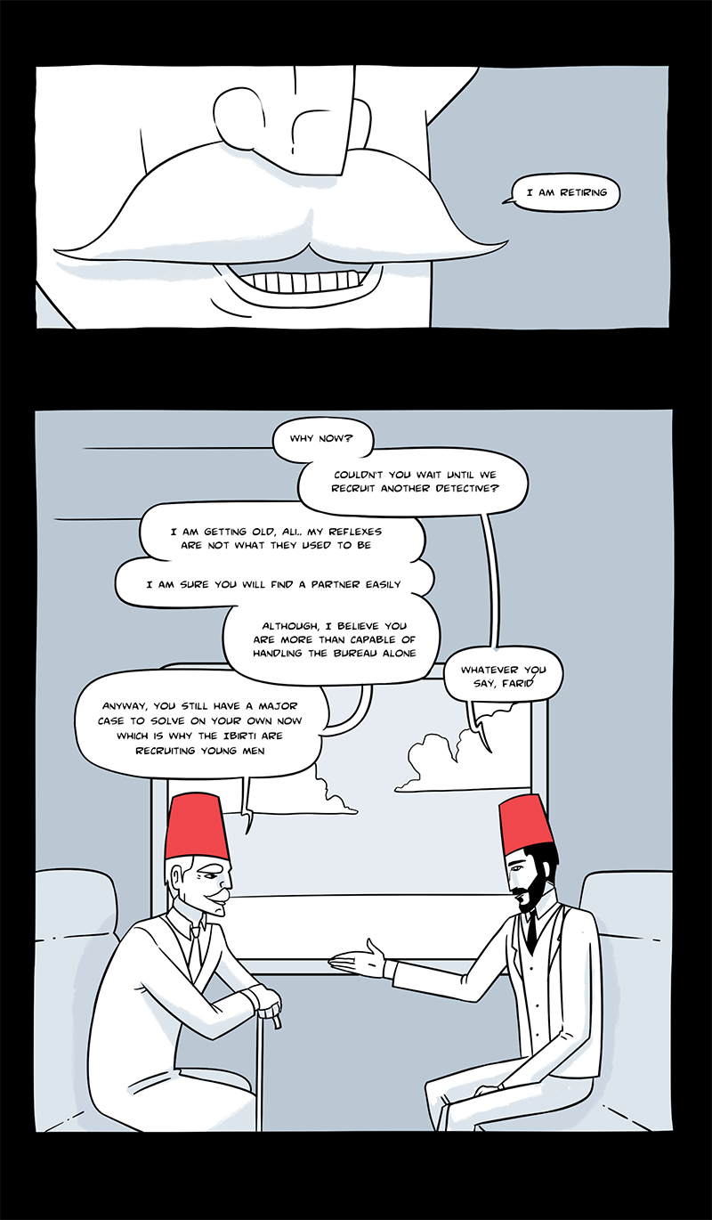 This comic series revolves around Ali Ghareeb, a detective for the Bureau of Special Investigation during King Farouk’s era. After his last case with his old partner, he recruits a young speedster named Ahmed Laz. Together they investigate paranormal cases.