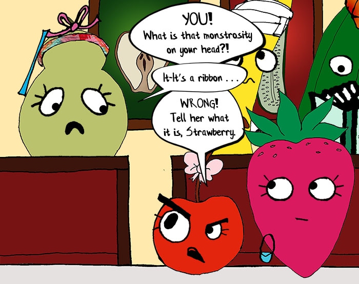 Banana is thoroughly concussed after fainting over Ms. Blackberry; Pear shows over her new look; and Cherry takes issue with, well, everything.
