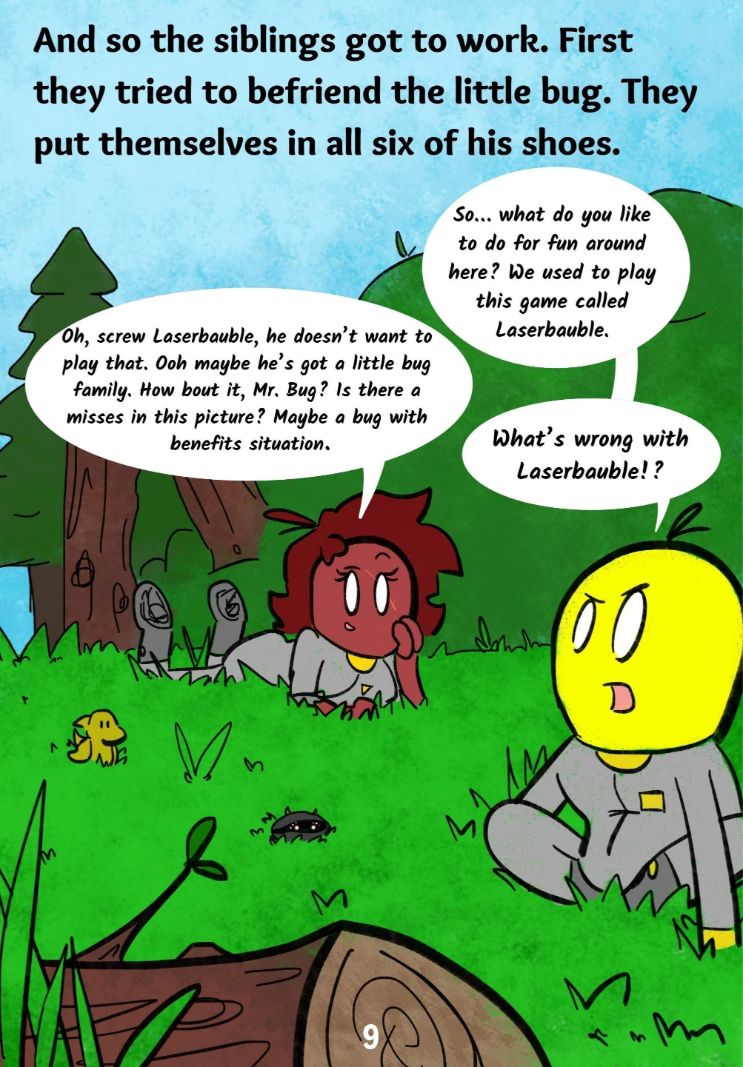 The tale of a mean bug who probably wasn't that mean but was in fact too dumb to know how to be mean. Thanks for reading! :)