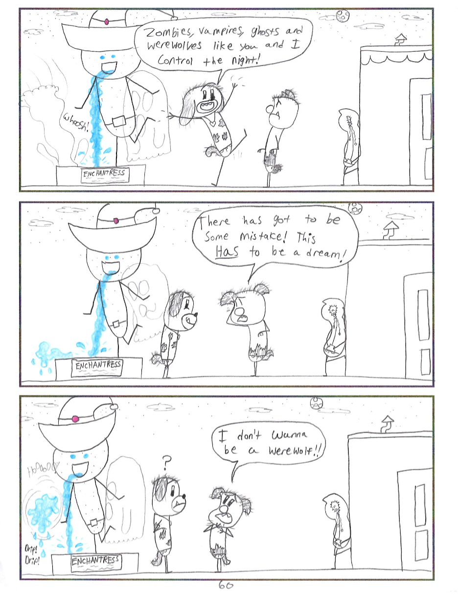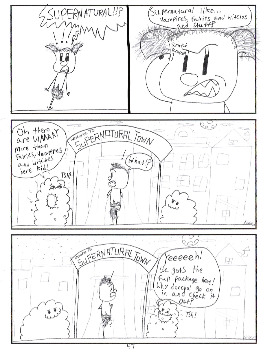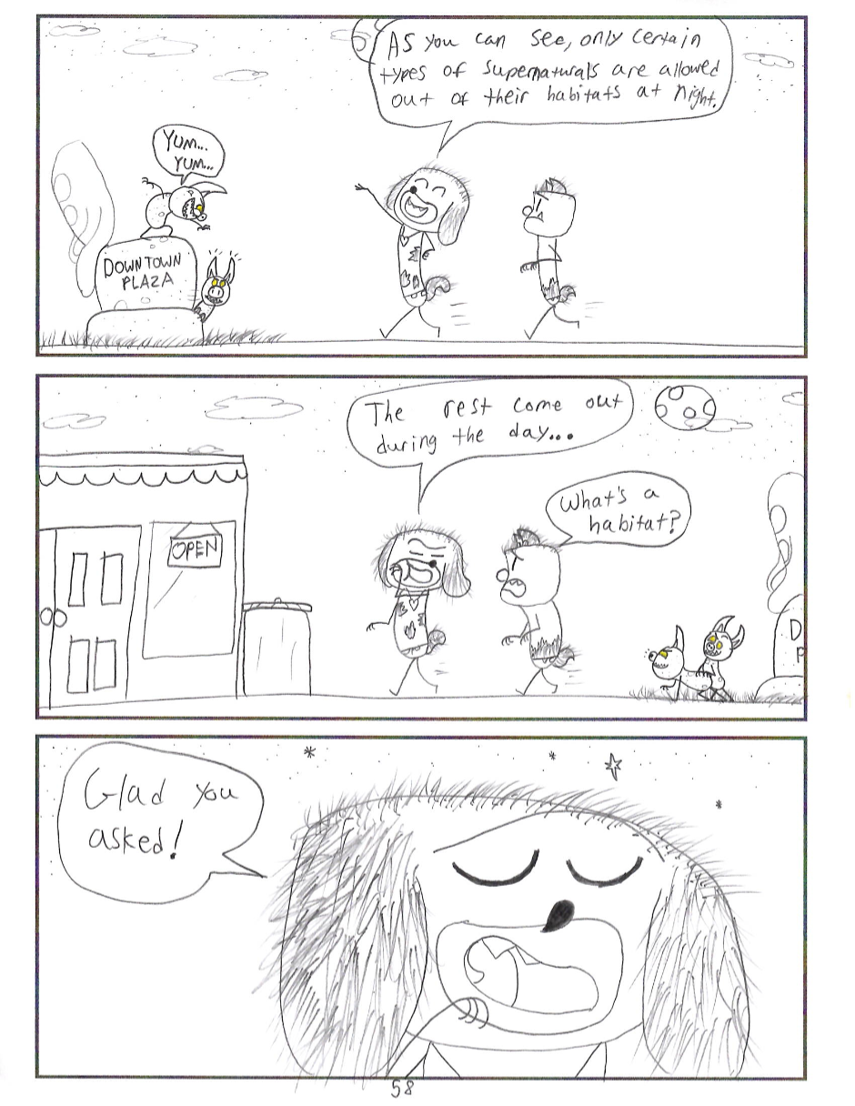 This project I made is called The Supernatural Curse. A comic about a boy who randomly becomes a werewolf and finds himself in another dimension where he must find his own way. Follow Leroy on his superstitious journey through the habitats of Supernatural Town as he unravels the towns deep history by figuring out where he fits in.