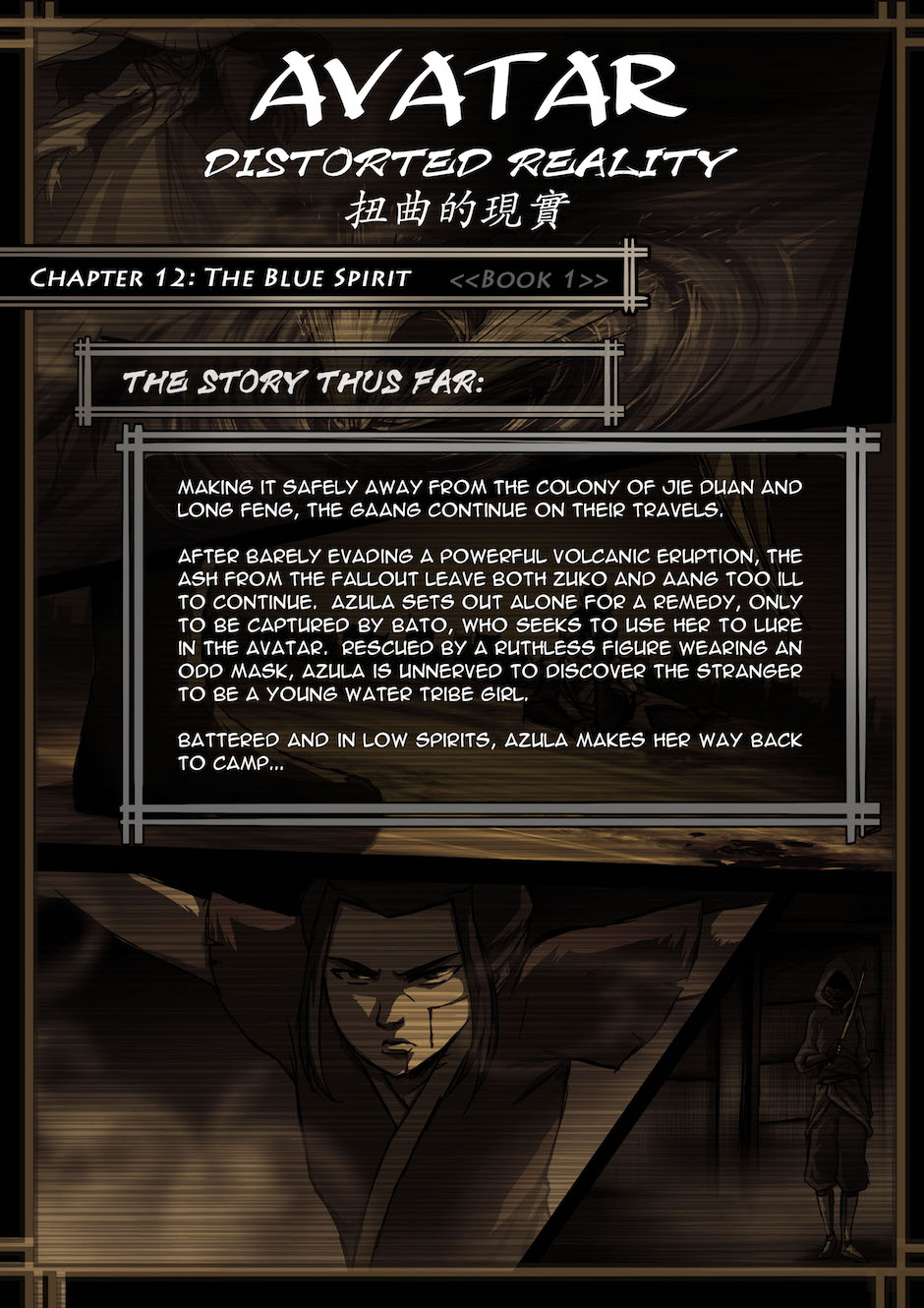 A few scattered scenes adapted into comic form from Baithin's Avatar fanfiction, Distorted Reality. For the full story, check out the original fanfic: https://www.fanfiction.net/s/3952155/1/Distorted-Reality