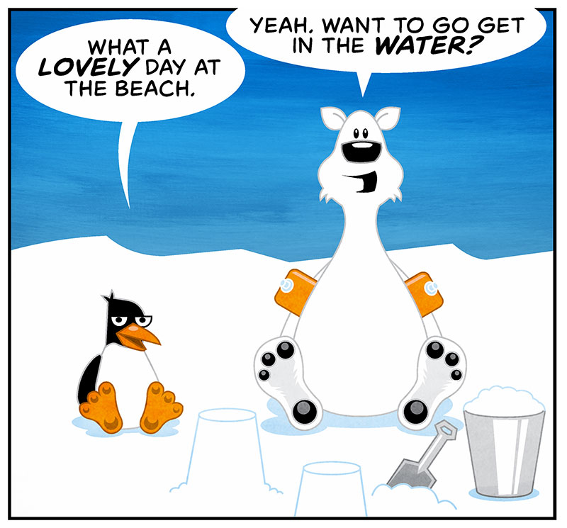 The beaches in Antarctic are a little different. They are basically ice beaches except for some areas in summer that the dark soil and rock see water. I’m sticking to making castles in the snow with Wally.