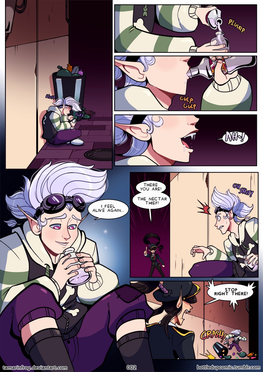 Bottled Up is a character driven, fantasy adventure, slice of life+Romance comic. Created by Jenna K "TamarinFrog"
