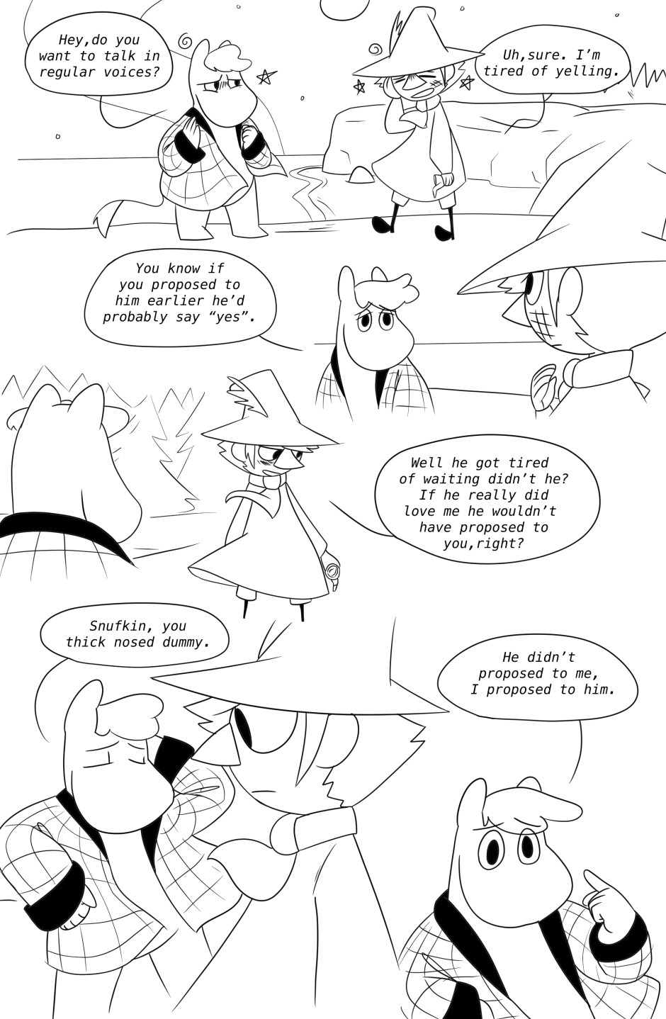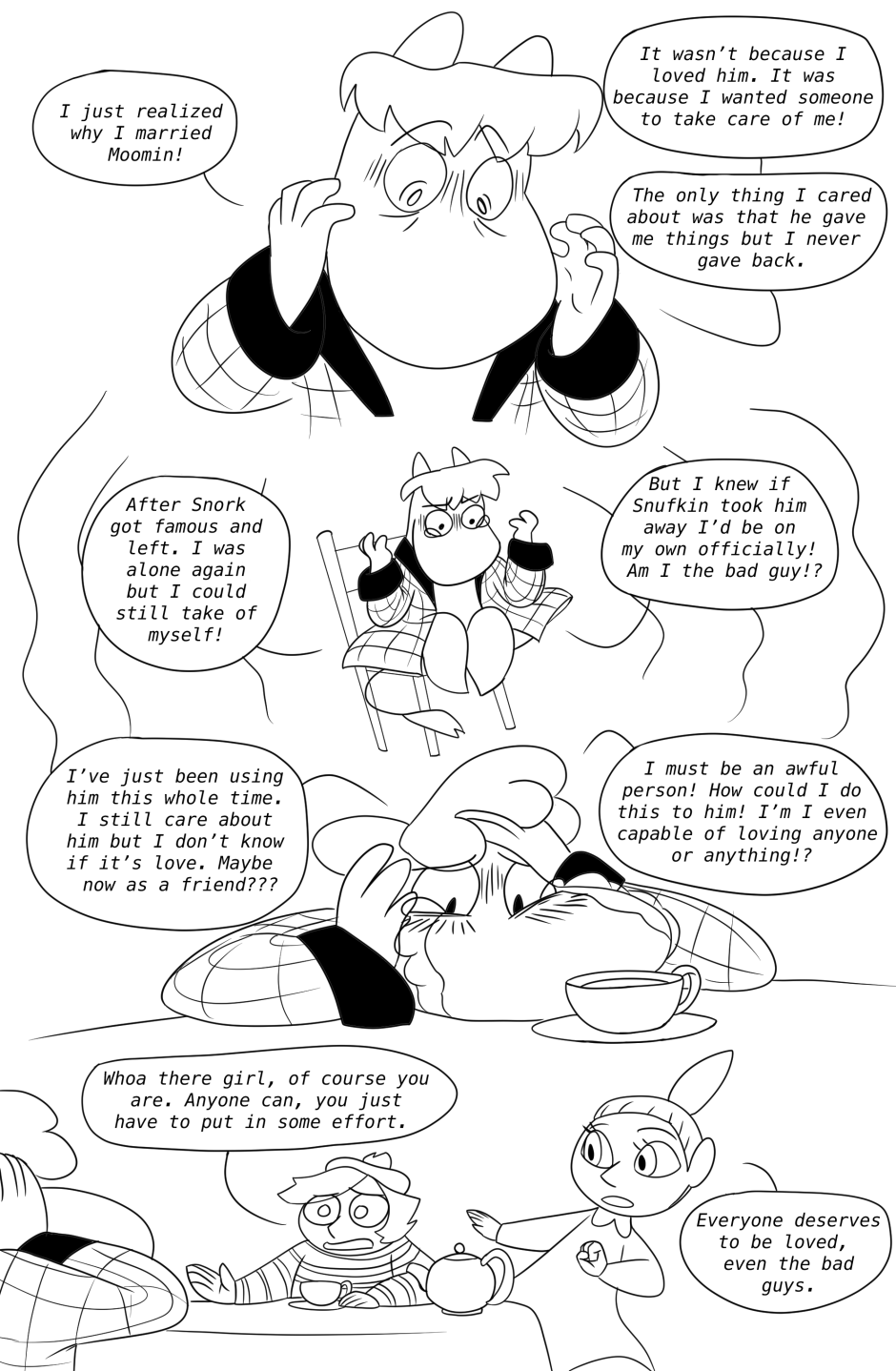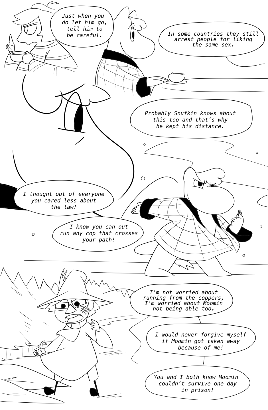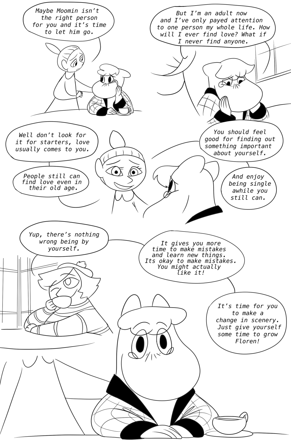 Snufkin, Moomin, and the rest of the moomin family and friends are all grown up now. Snufkin comes back from one of his many trips only to find out that his best friend who he had feelings for has gotten married. Snufkin goes on a personal journey through dealing with heartbreak, change, accepting his feelings and figuring out whats really important to him in his life.