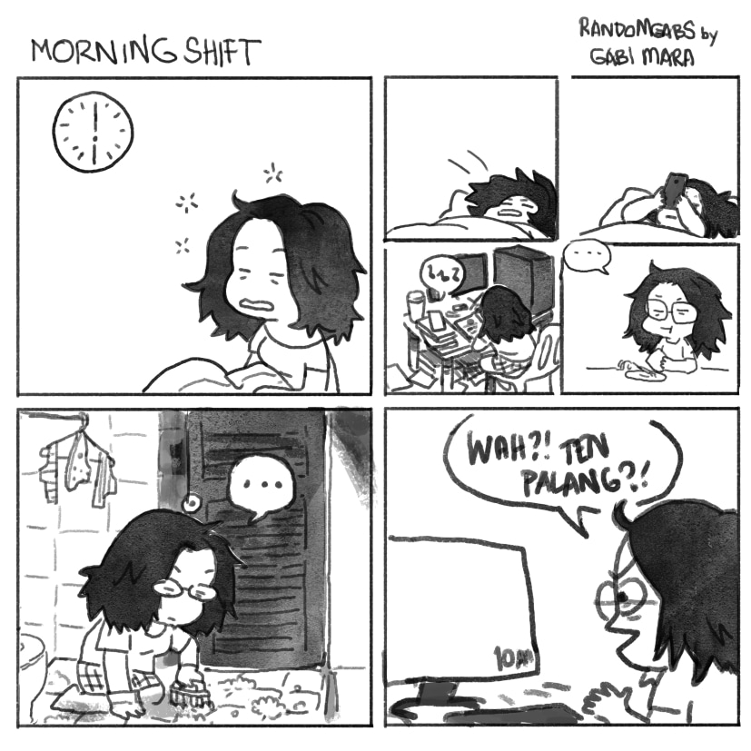 Since 2018 August, I've gotten myself into a regular job to sustain myself. Freelancing isn't really covering the sh*t I need to live so tadah, here I am adjusting to the morning shift -- I've been on the night shift for roughly 6 months before this.