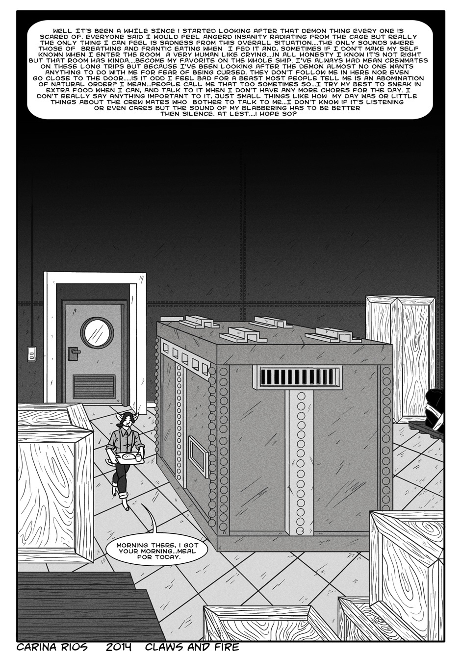 In a fantasy world with magical creatures, Huxley a boy who is only half human tends to be shunned and ridiculed by all who look at him. One day while working as a crew mate on a cargo ship back to his home island he is forced into the task of taking care of a so called demonic creature locked in a cage and told "No matter what you must give it no sympathy".
