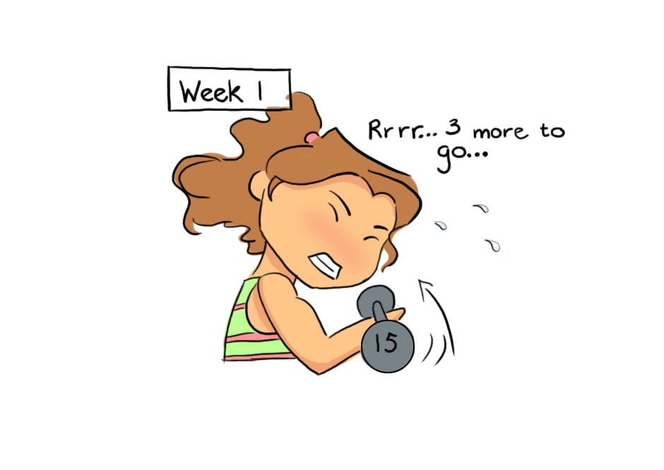 It's tough, but sticking with a workout does make you stronger! I couldn't see the differences day to day, but after about 2 months other people started noticing!