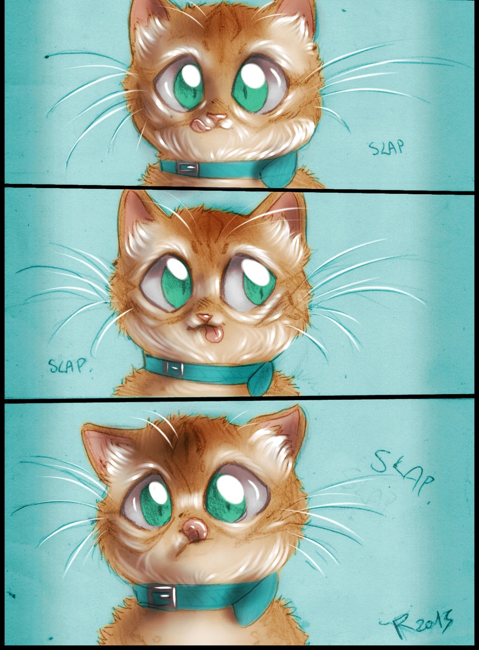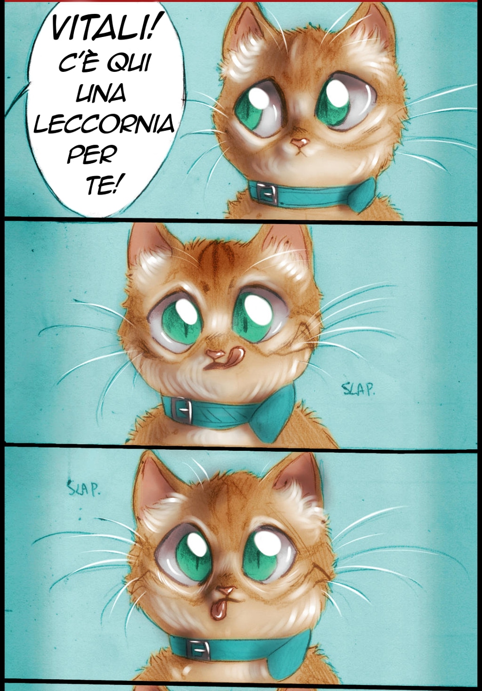 Vitali aveva un modo tutto particolare di dimostrare che aveva fame: non miagolava, come invece faceva sua sorella, nè si strusciava sulle gambe. No, lui iniziava a leccarsi tutta la faccia in un modo buffissimo, con la lingua che sembrava andare in tutte le direzioni come un morbido fuoco d'artificio. Che risate che mi sono fatta!