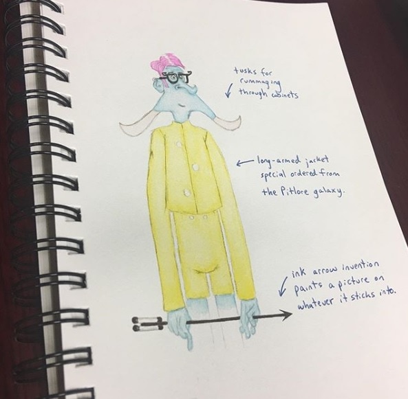 While his tusks shoot out like arrows causing death and destruction whenever he so chooses and creating one of the greatest warrior species of all time, this Doobly is an artist and prefers painting over pain and punishment. In fact his ink arrow invention allows him to create art on whatever far away surface he shoots, including hard to reach billboards, skyscrapers, and mobsters.