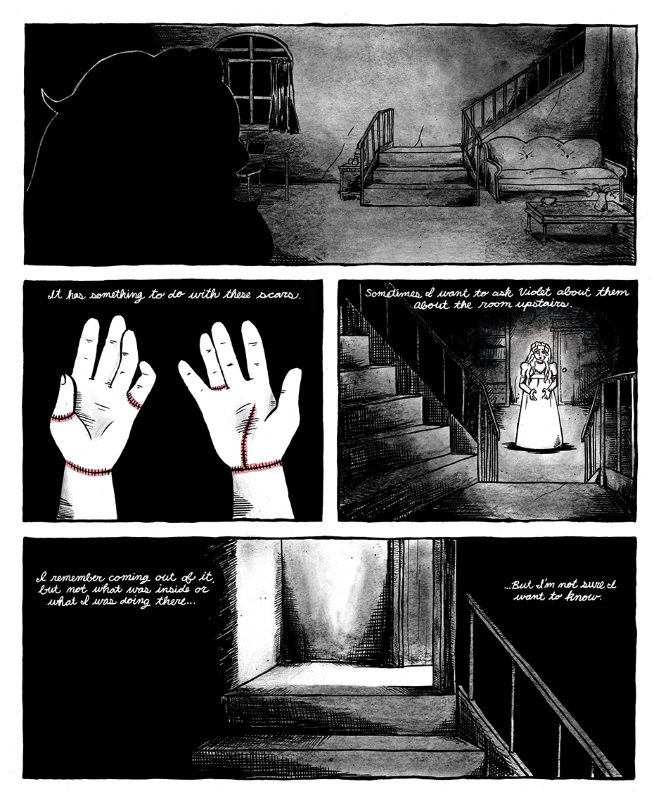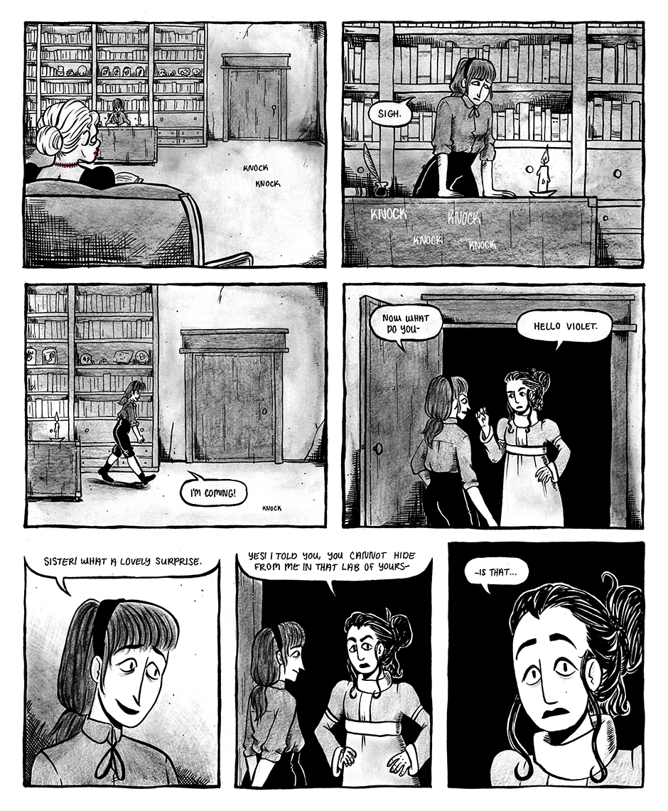 The Prometheite is a graphic novella reimagining Mary Shelley's Frankenstein as a lesbian tragedy. It follows the romance between Violet Schweitzer and Aveline Clerval, two young women in 19th century Ingolstadt.