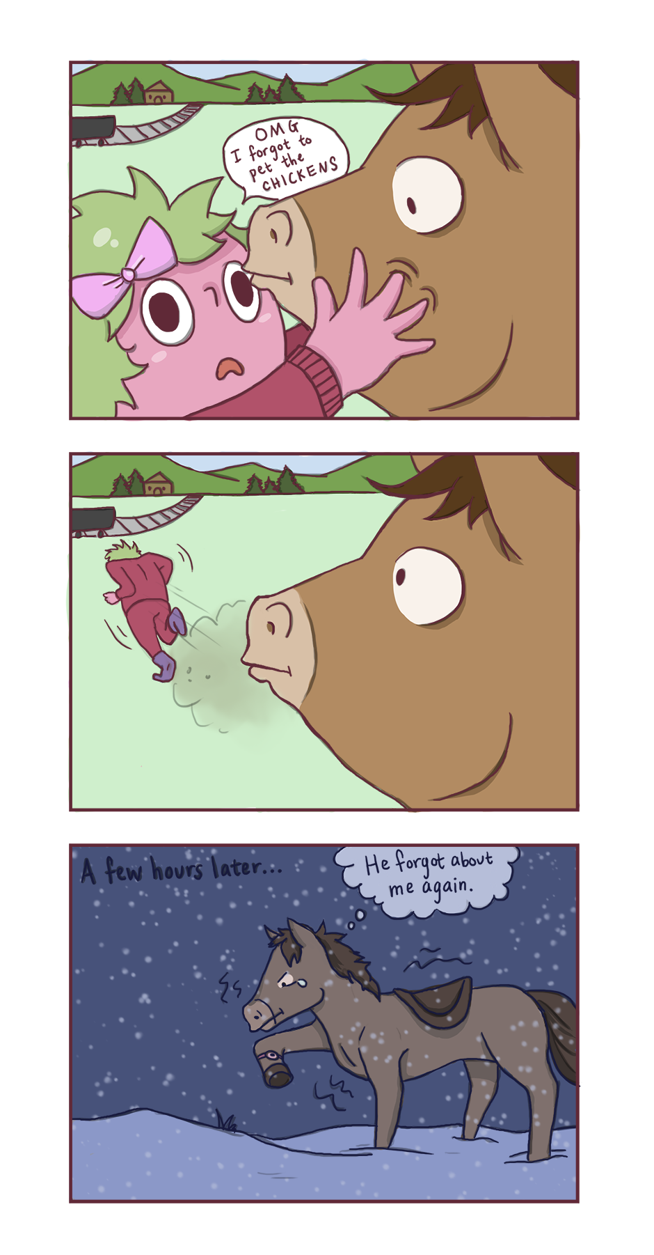 I've abandoned my horse way too many times-- good thing he can find his way back during the night. Good boy, Chester.