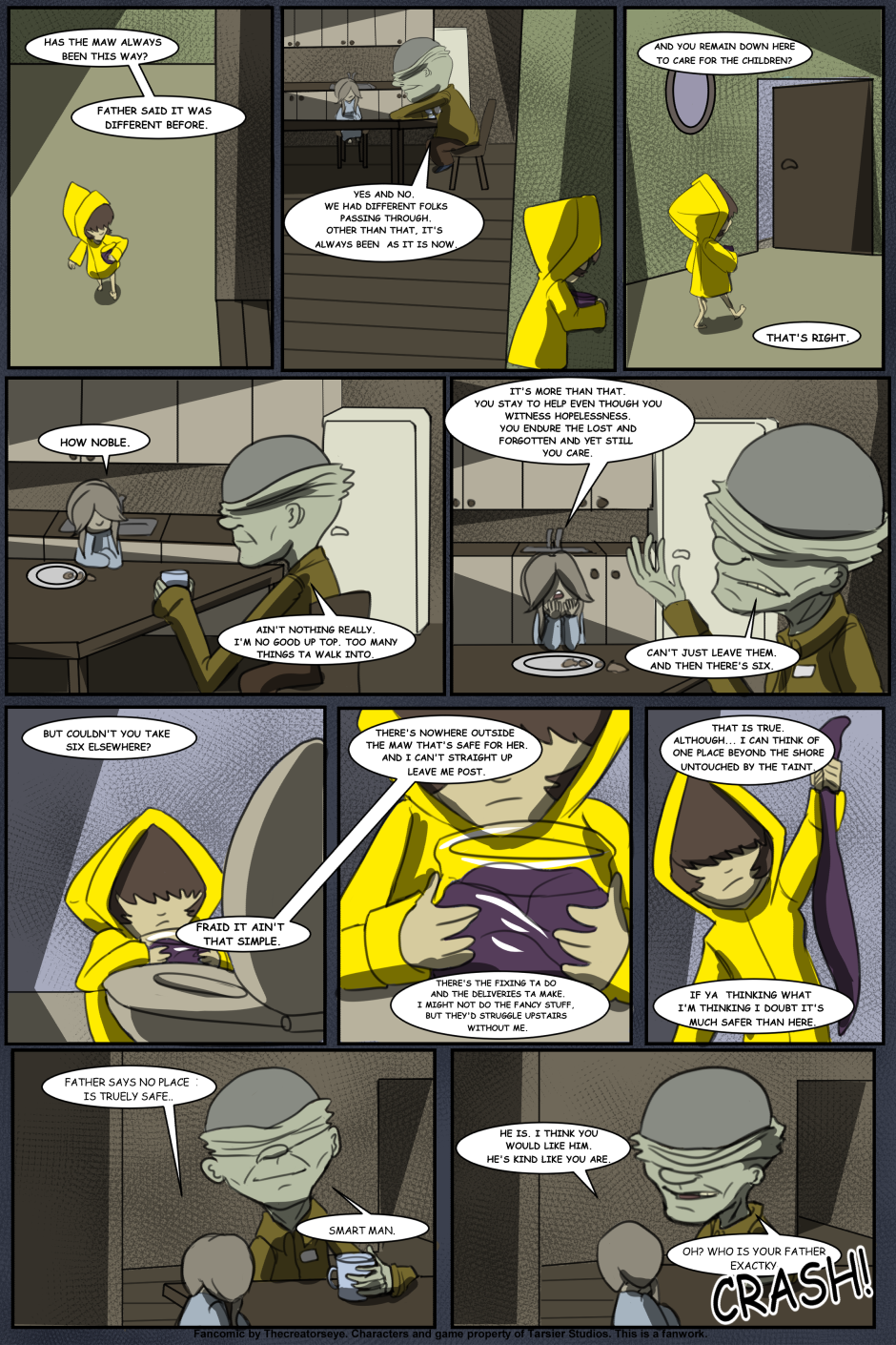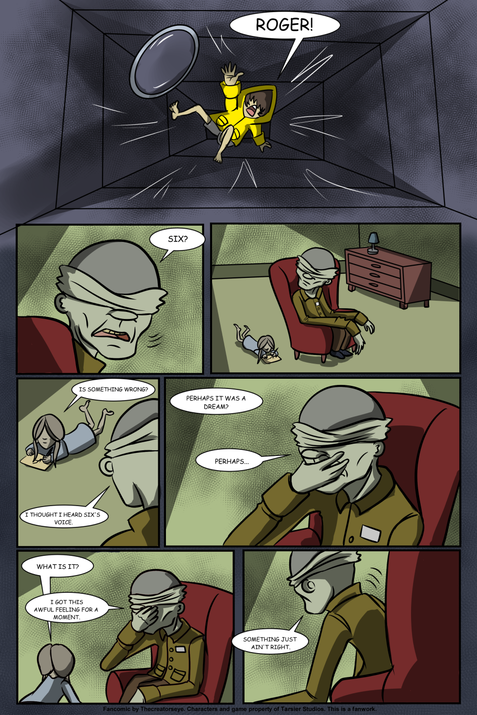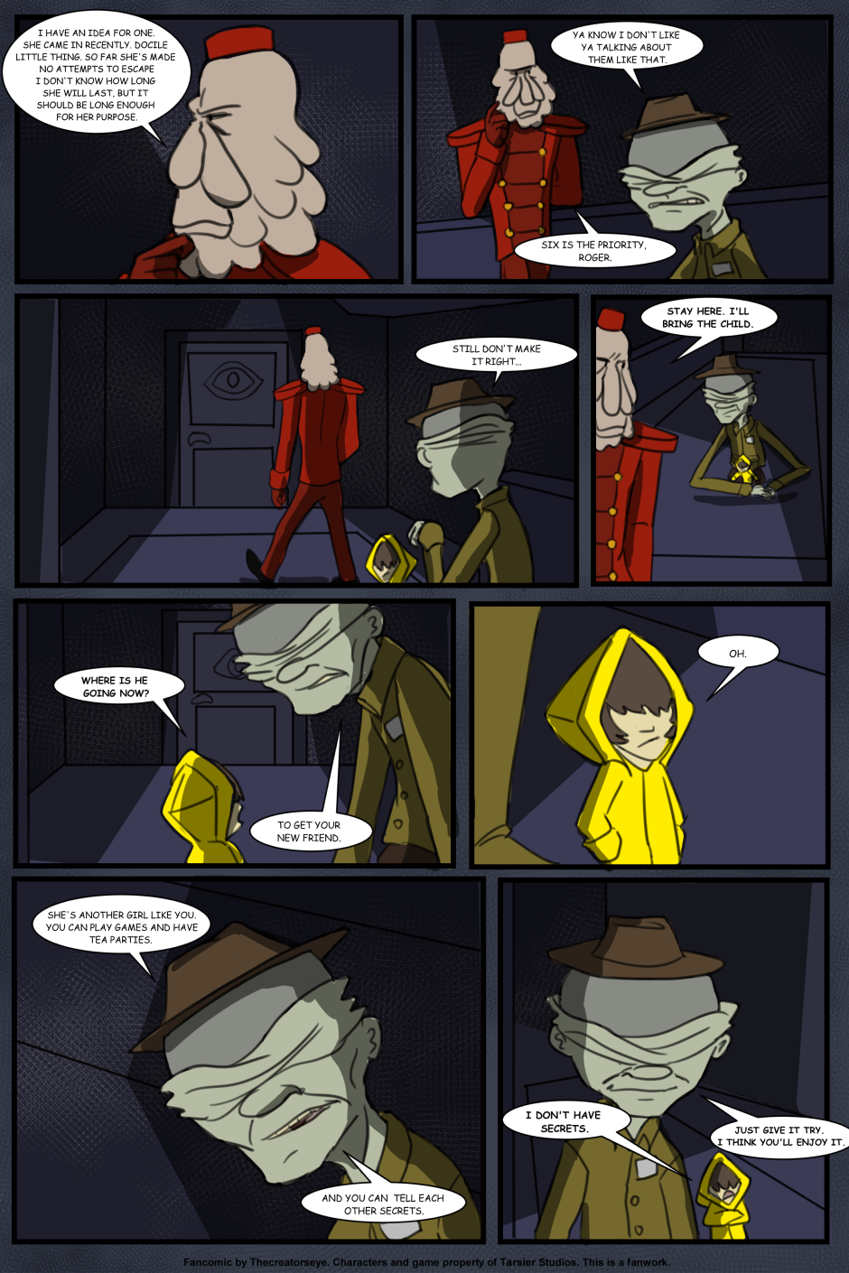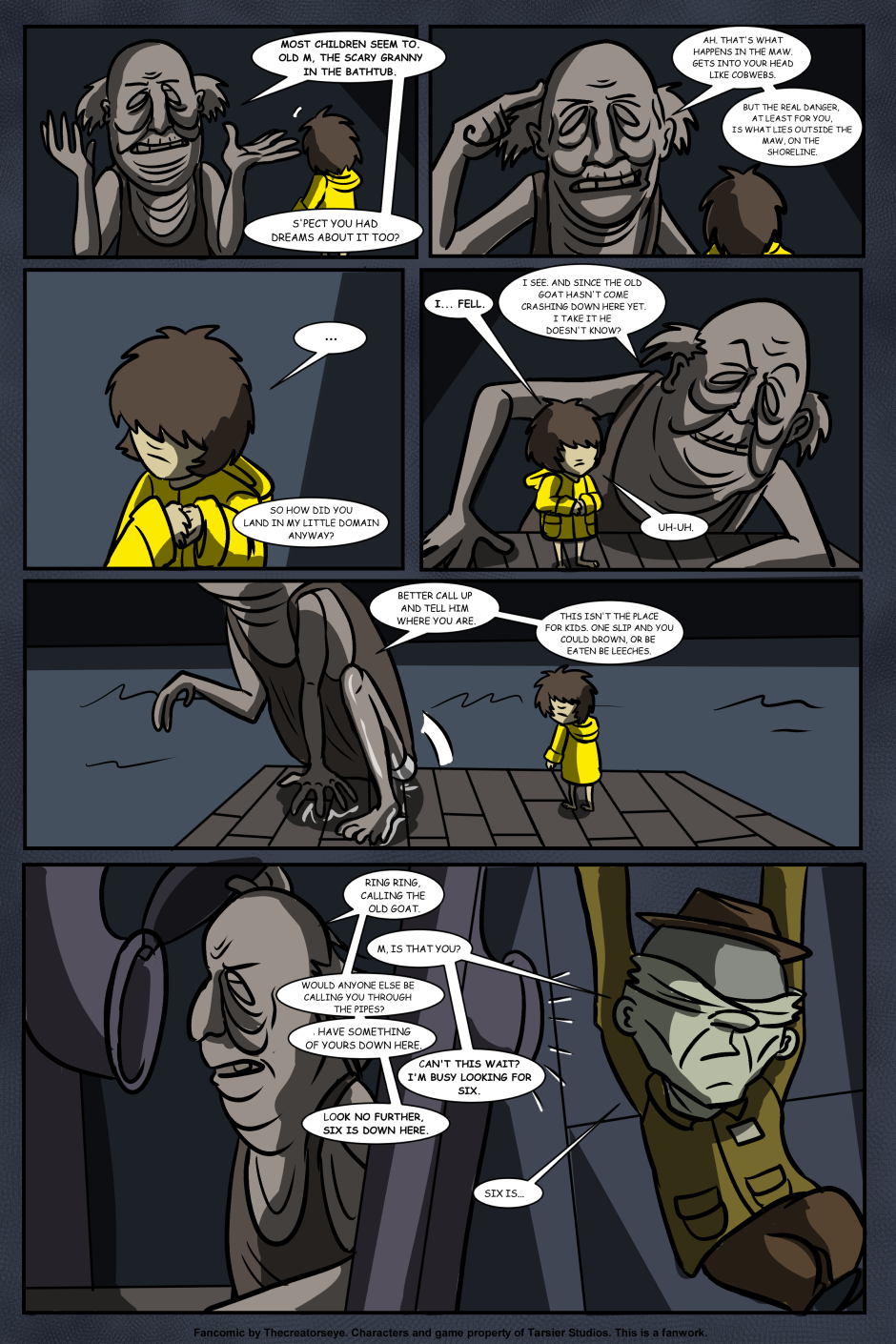 An AU of the Little Nightmares game. Six was born in the Maw and raised by a certain blind Janitor. But as the years go by, Roger finds it harder to contain Six's curiousity and the truth of the Maw's existance comes to light - as does Six's role in it.