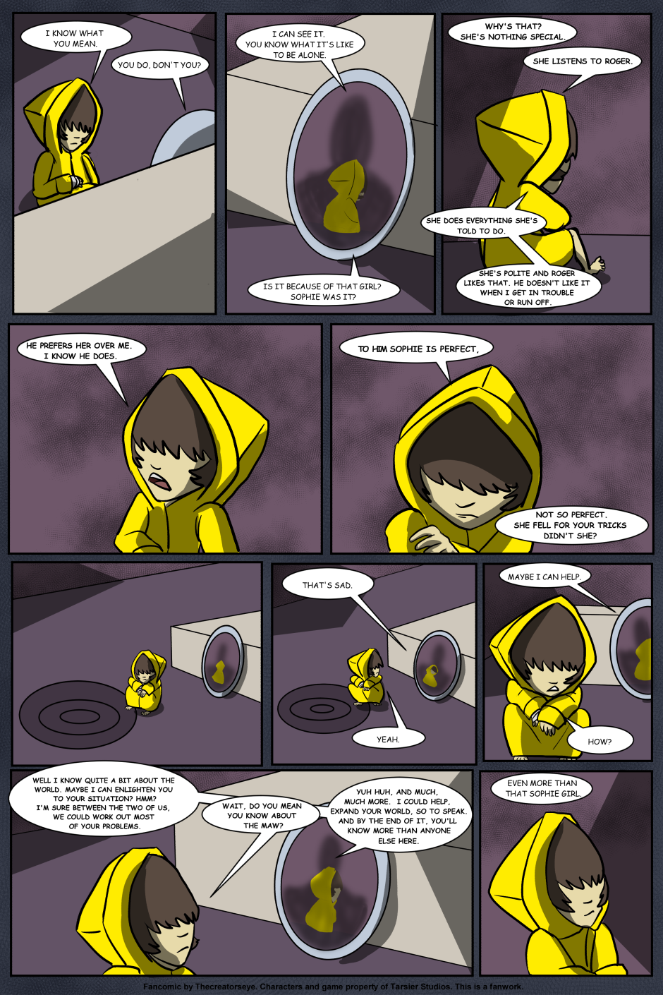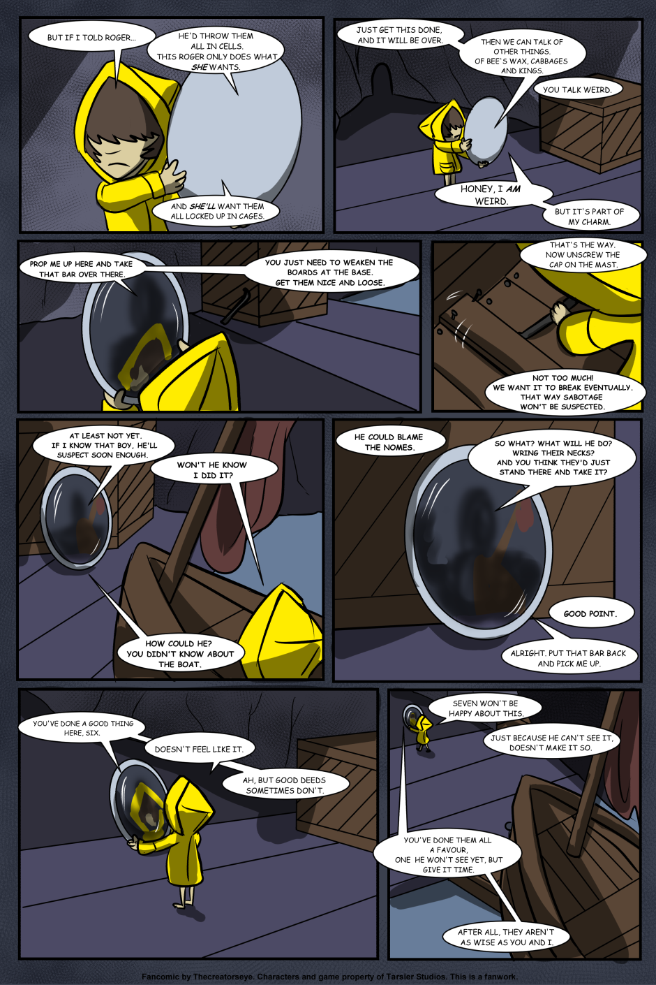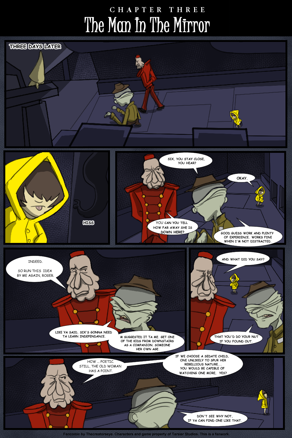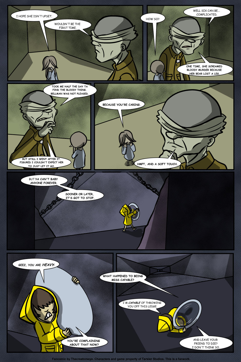 An AU of the Little Nightmares game. Six was born in the Maw and raised by a certain blind Janitor. But as the years go by, Roger finds it harder to contain Six's curiousity and the truth of the Maw's existance comes to light - as does Six's role in it.