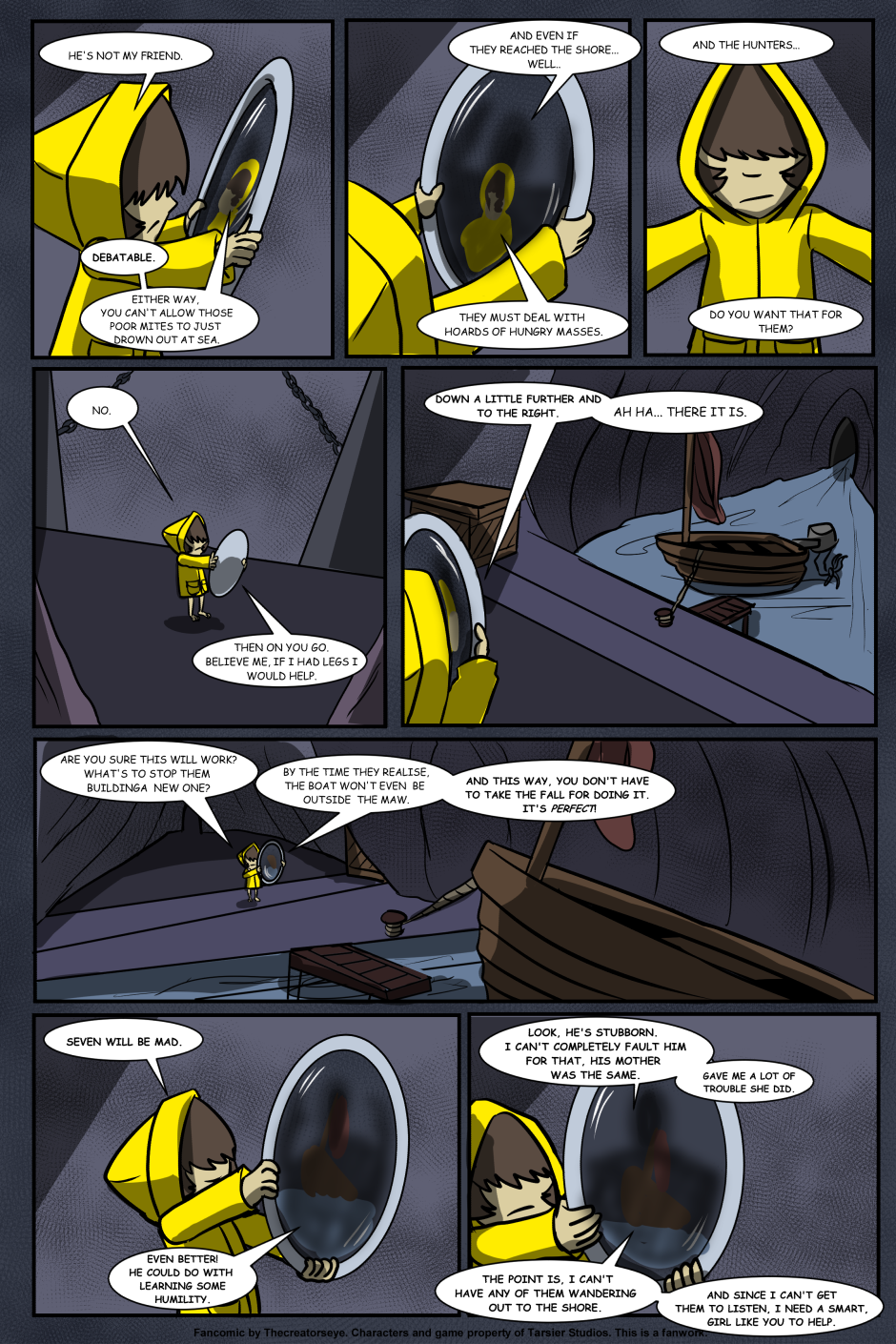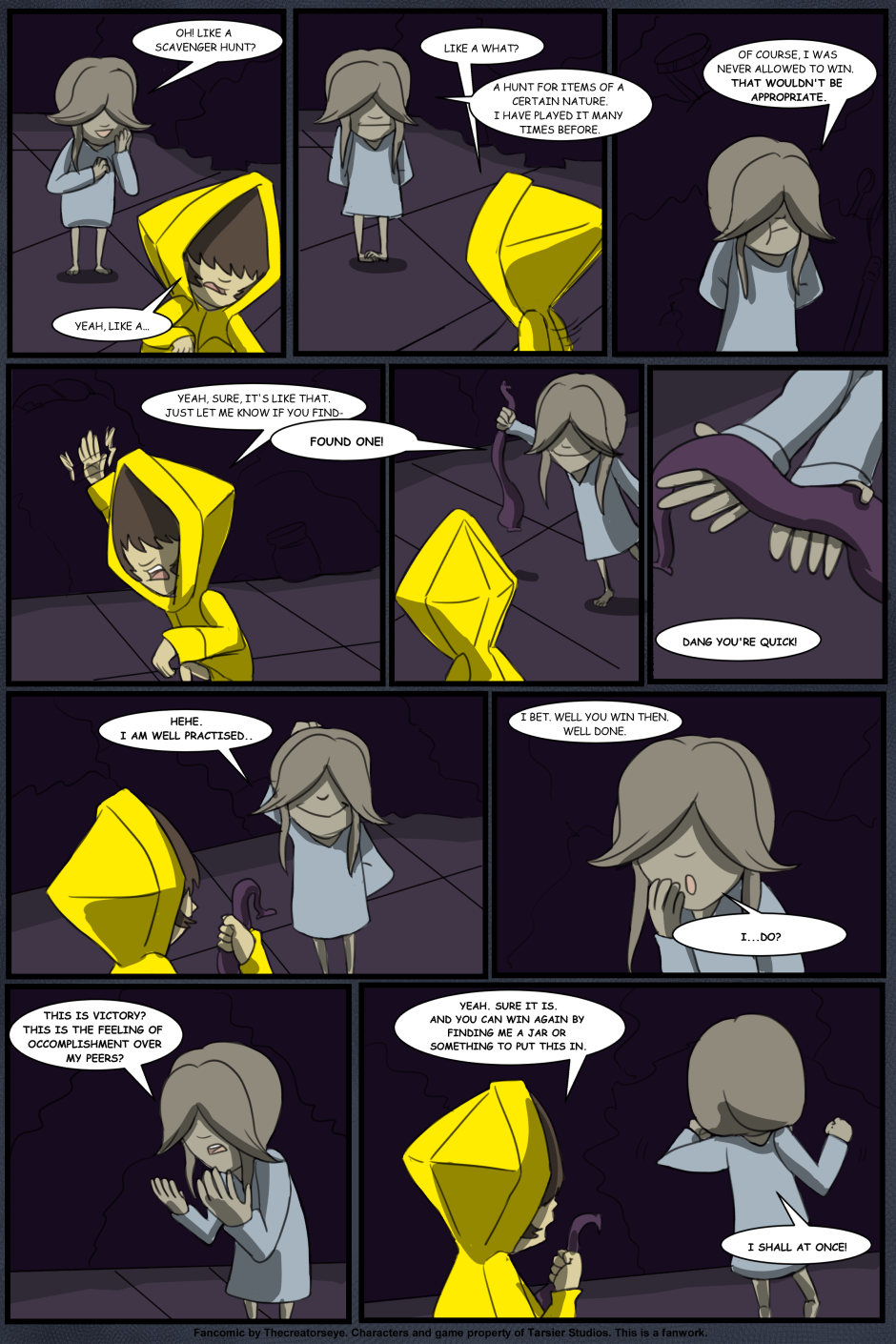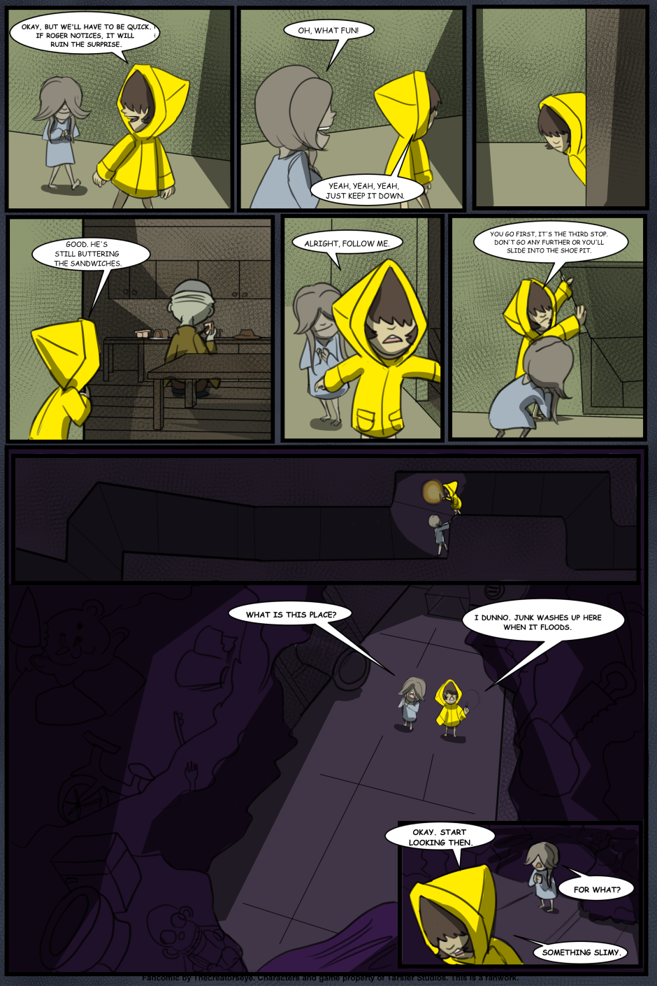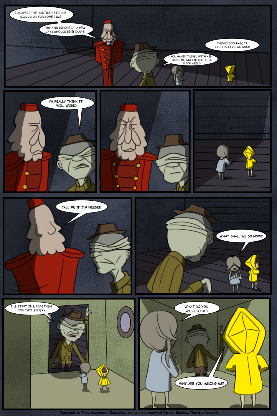 An AU of the Little Nightmares game. Six was born in the Maw and raised by a certain blind Janitor. But as the years go by, Roger finds it harder to contain Six's curiousity and the truth of the Maw's existance comes to light - as does Six's role in it.