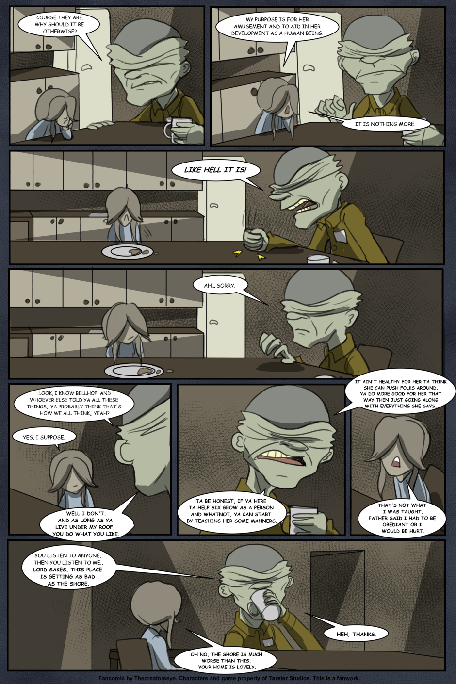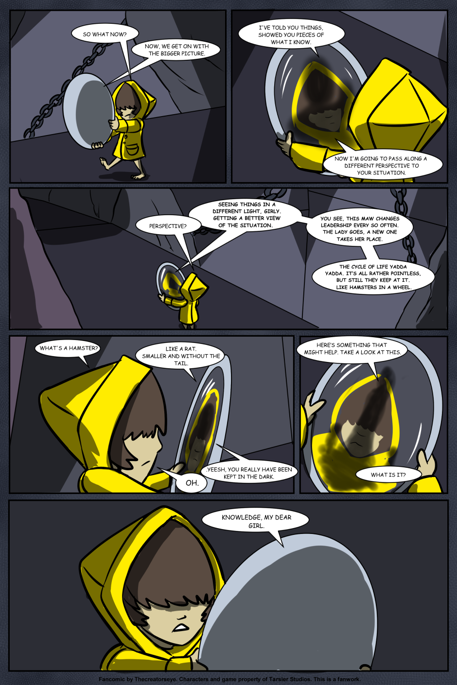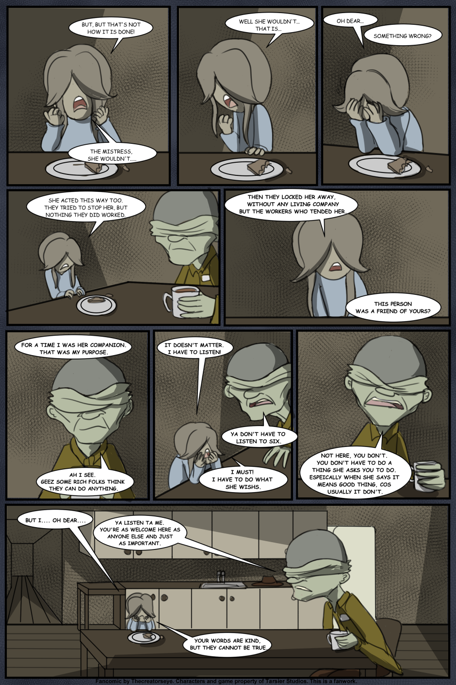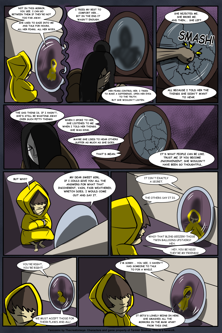 An AU of the Little Nightmares game. Six was born in the Maw and raised by a certain blind Janitor. But as the years go by, Roger finds it harder to contain Six's curiousity and the truth of the Maw's existance comes to light - as does Six's role in it.