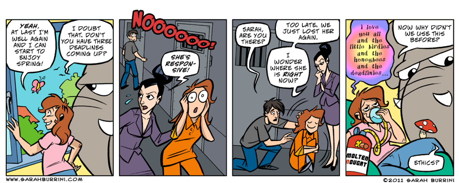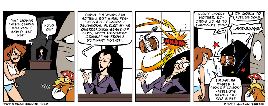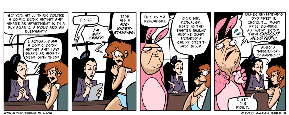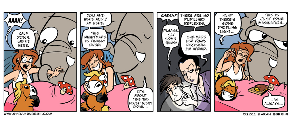 Life Ain’t No Pony Farm is a semi- autobiographical, but absurd comic strip about a cartoonist living together with an elephant, a mushroom and a pony.