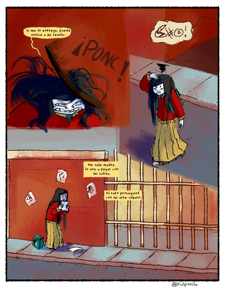 Ese día Marisol aprendió muchas cosas XD Marisol aprendió a no meterse con vagabundos que inhalan pegamento, descubrió que su saliva es excesivamente pegajosa, aprendió que el profe Horacio es un viejo tan verde como su camisa y que el spray es el gas pimienta de la plebe que no puede invertir tanto dinero en defensa personal......espero que aprenda a correr rápido.