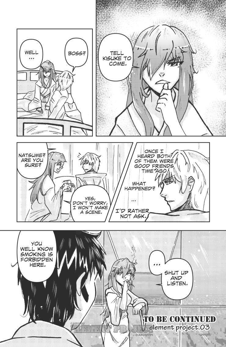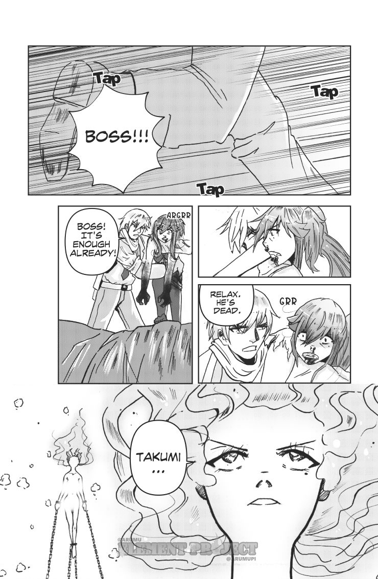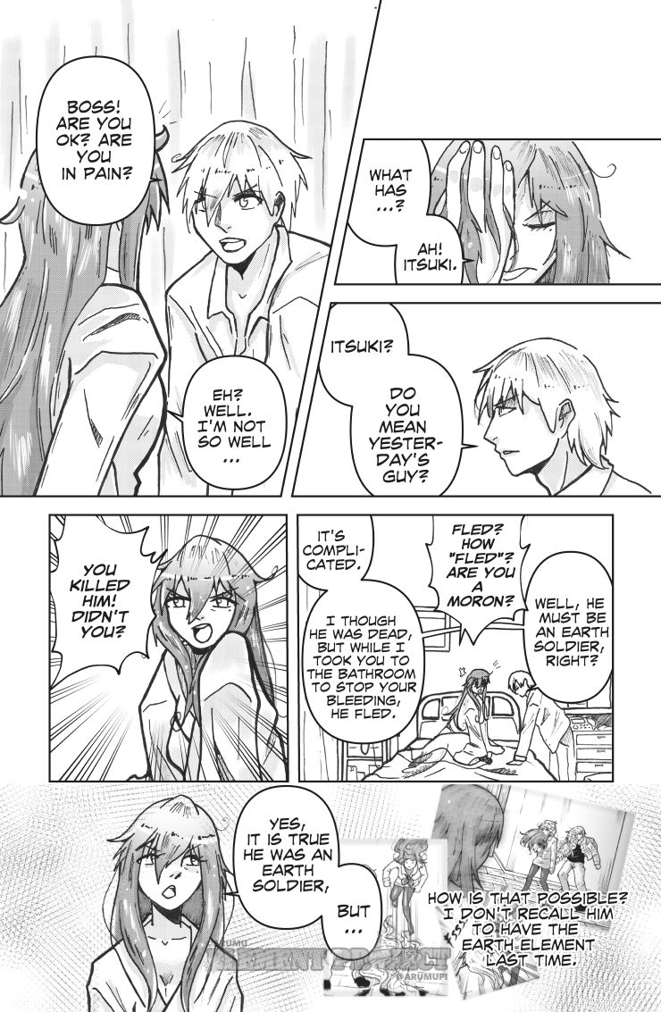 What a battle and a lot of mystery between Itsuki and that "guy." I really like your art and that lore at the end is thought out and makes sense...love the "plasma, liquid, gas, solid" alongside the Fire, Water, Air Earth! Fantastic work!