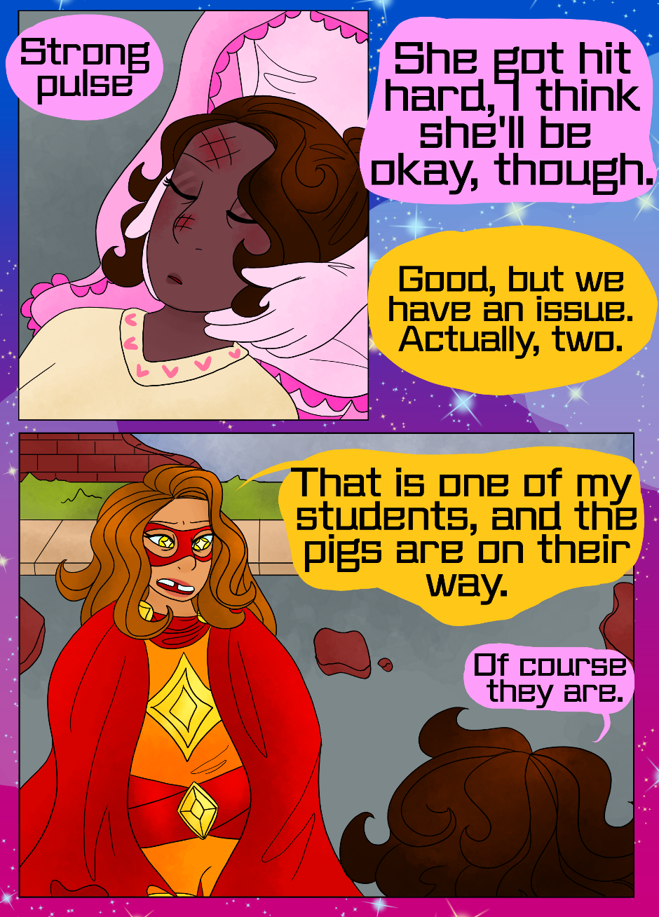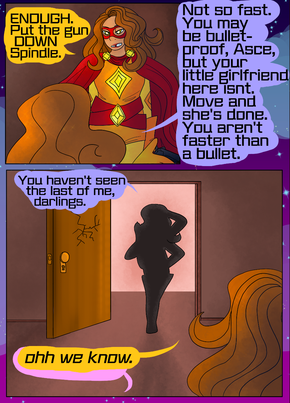 Spindle's back in the wind, and the vigilantes find an innocent bystander hurt.