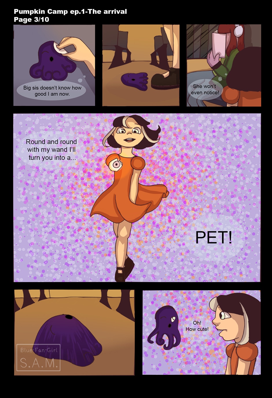 Pumpkin camp tells the tales of two witch sisters that live in a society that neither accepts nor allows the existence of witches and monsters. Because of that they decide to go to the only safe place for them: a summer camp by the name of Pumpkin Camp.