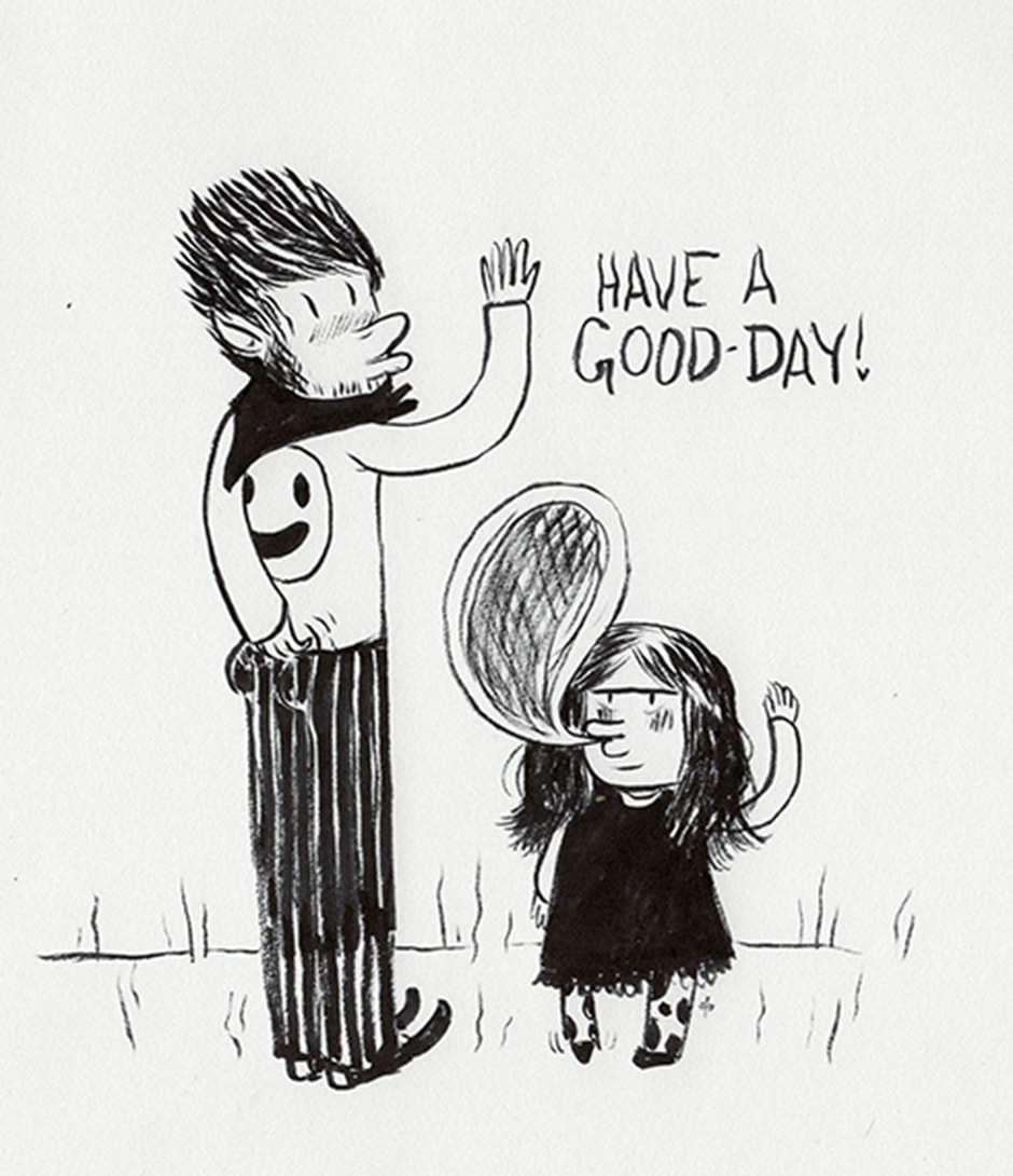 Doodle of an older brother and sister wishing you a good day...?