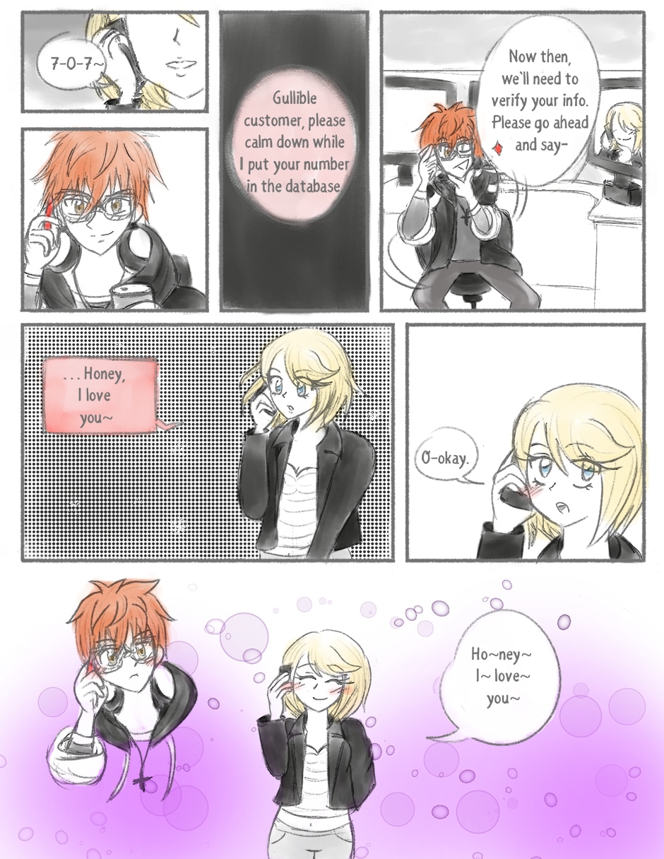 The infamous phonecall. This was honestly one of the few things I remember the very first time I played MM. I didn’t think much about Seven during the intro chat, but that phonecall def got me interested in him. It looks like a ship is starting to sail~ ;)