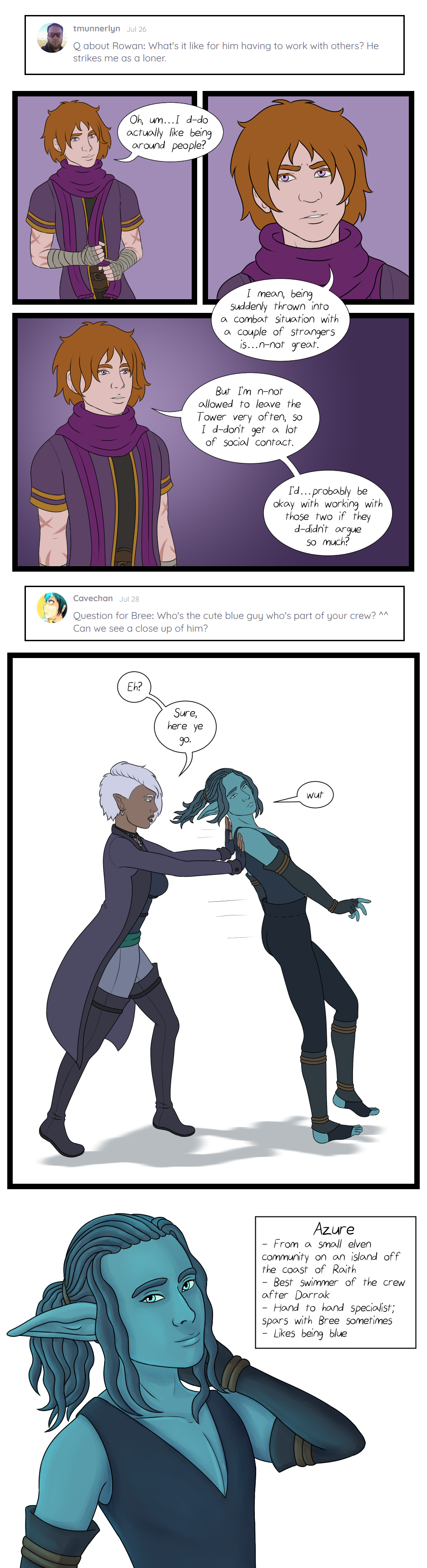 Last QnA episode next Monday, and then the week after, Chapter 4 starts! :D Oh, and I went ahead and put a preview from the cover art for Chapter 4 up as the vote incentive on TWC, if you want to get started early on the "guess the tarot card inspiration" game. :P https://www.topwebcomics.com/vote/25644
