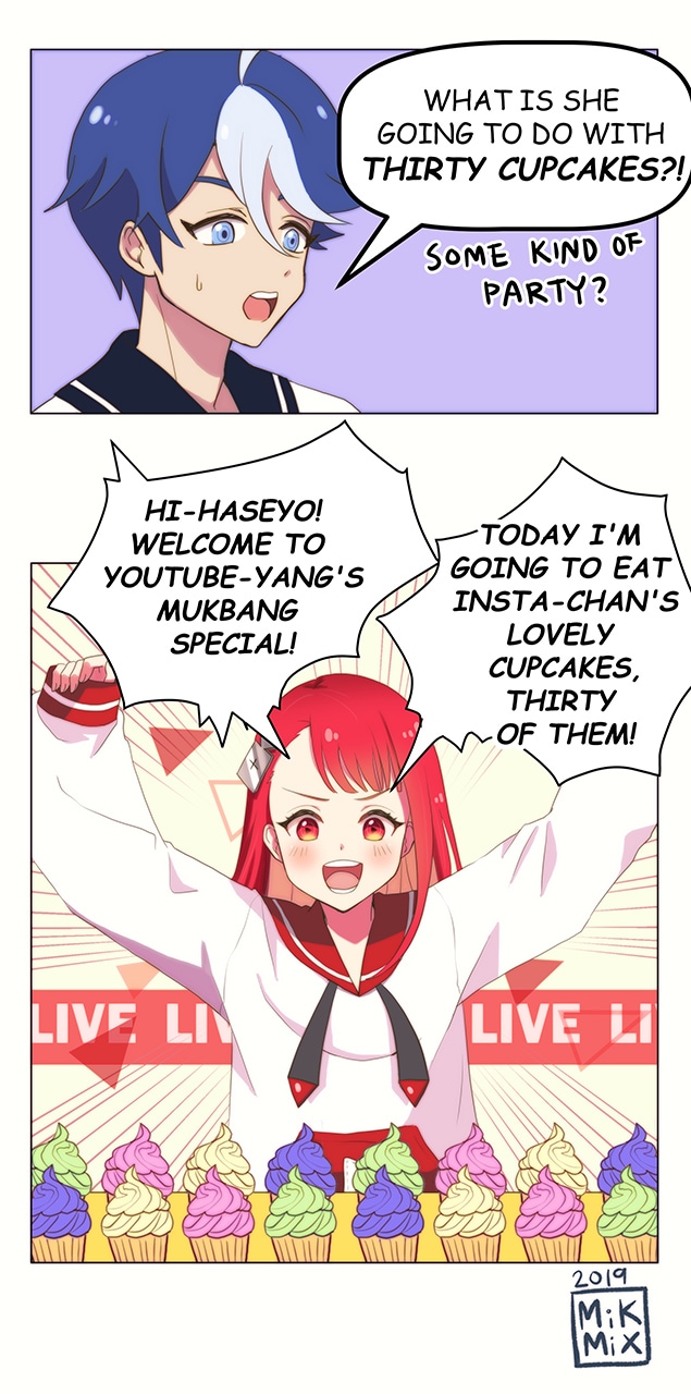 YANG IS A KOREAN SUFFIX THAT CAN BE USED IN SIMILAR WAY WITH CHAN^^ PERSONALY I'M NOT SO INTO MUKBANG BUT AM AMAZED AT SOME PEOPLE'S CAPACITY FOR FOODS...HOPE YOU LIKED HER, MORE CHARACTERS WILL APPEAR!