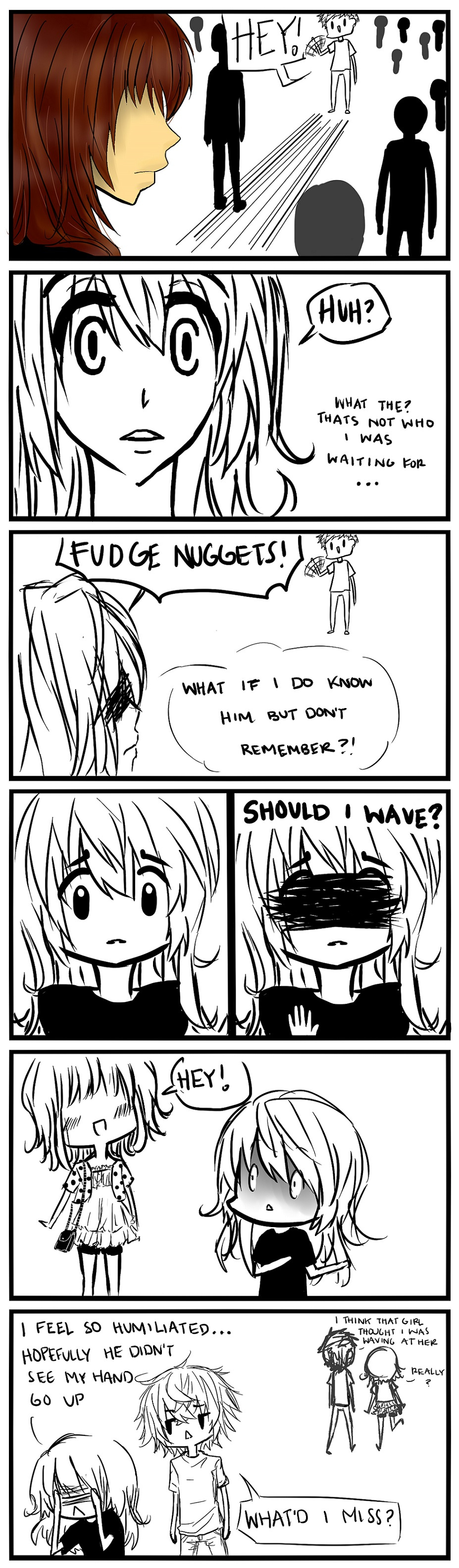 When you think someone is waving at you so you decide to do the same back despite being confused as to who they are, only to find out they were waving at the person behind you.