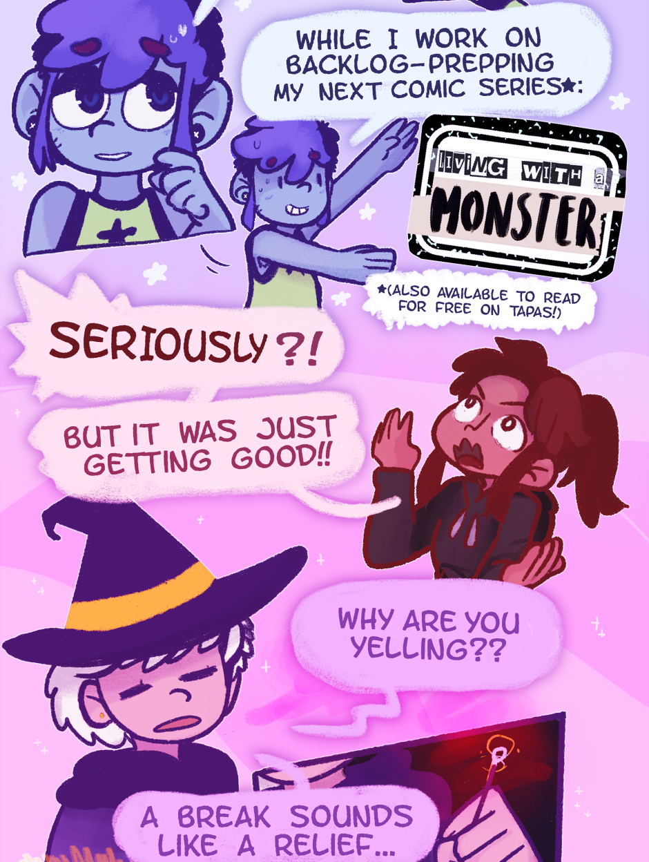 i'm super excited for LWAM!! learning more abt nichole is gonna be great! putting this comic on hiatus makes complete sense cuz actively working on and posting like three comics sounds like a new level of chaos lmao.