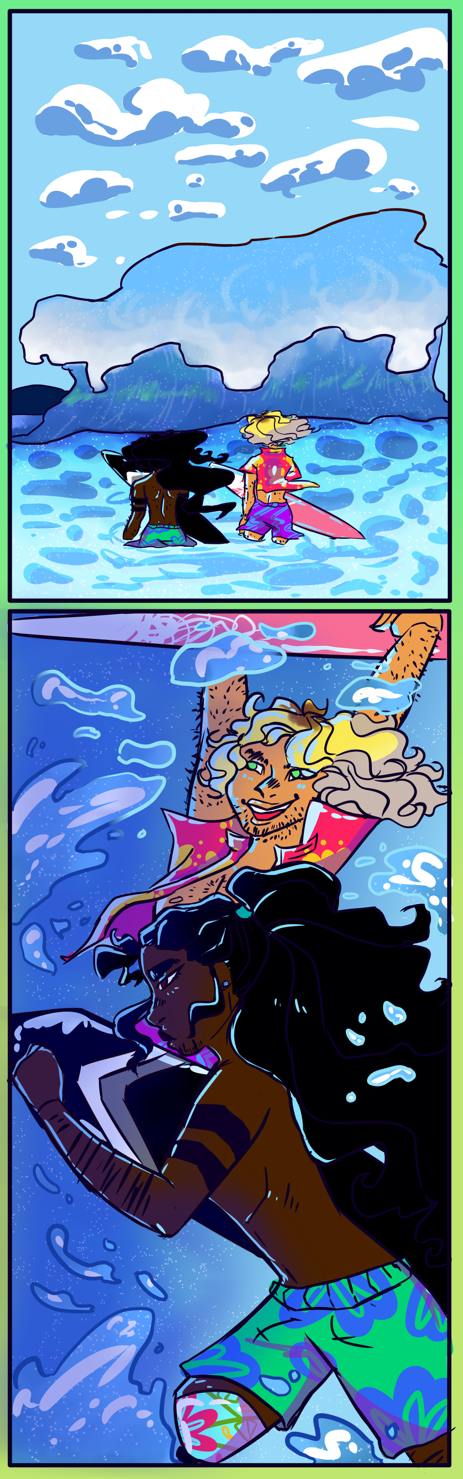 Two college students, Ikoah and Chayim, both share a passion for the ocean and surfing. Ikoah is new in town and is a lot more reserved and very much the quiet type. Chayim, on the other hand, is a lot more open and outgoing. Now, these two boys will not only catch waves but feelings.