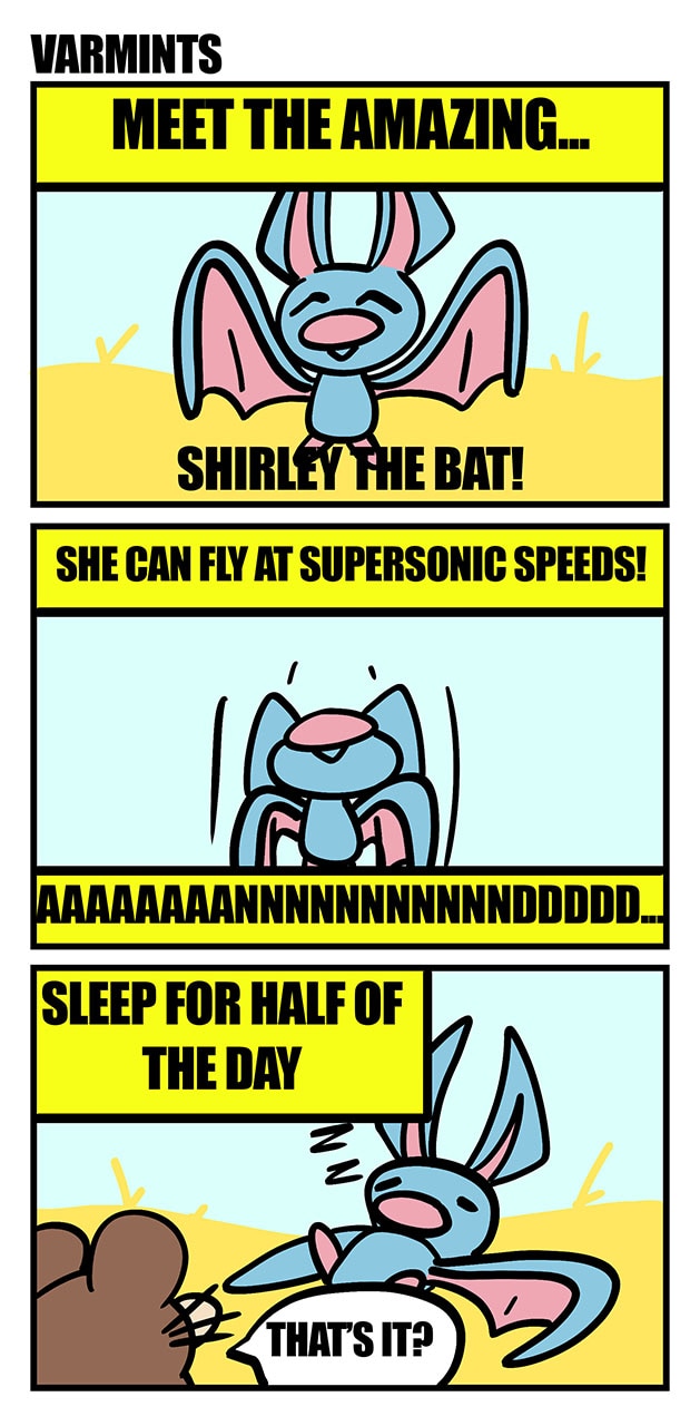 The daily comic strip starring animals that aren't usually loved by the masses. Join Welven the Rat, Shirley the Bat and Griffith the Raccoon on their comedic and heartwarming adventures as they try to live about their lives in the wild with the ever-present influence of human society.