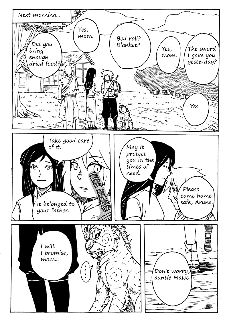 A young boy named Arune came across a mythical creature, Singh, and it set him and his friends off a journey to save the world. The story is based loosely on the Buddhist belief about Trilokya. This comic will be updated 2-3 episodes/ month. Some artworks may be posted in between. *Read from left to right*
