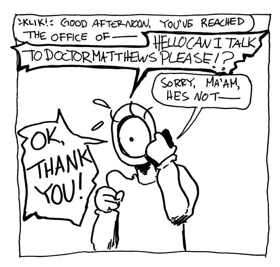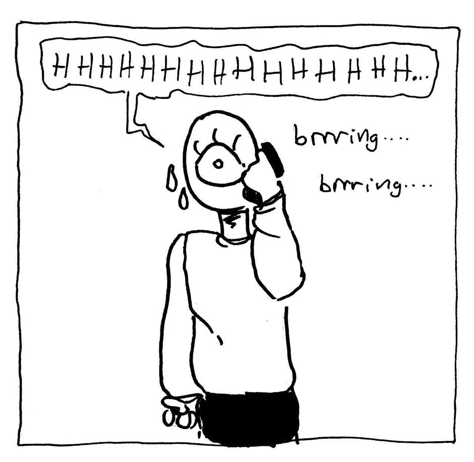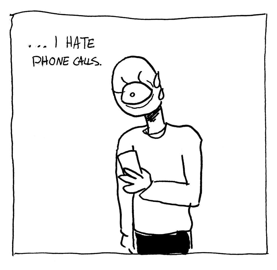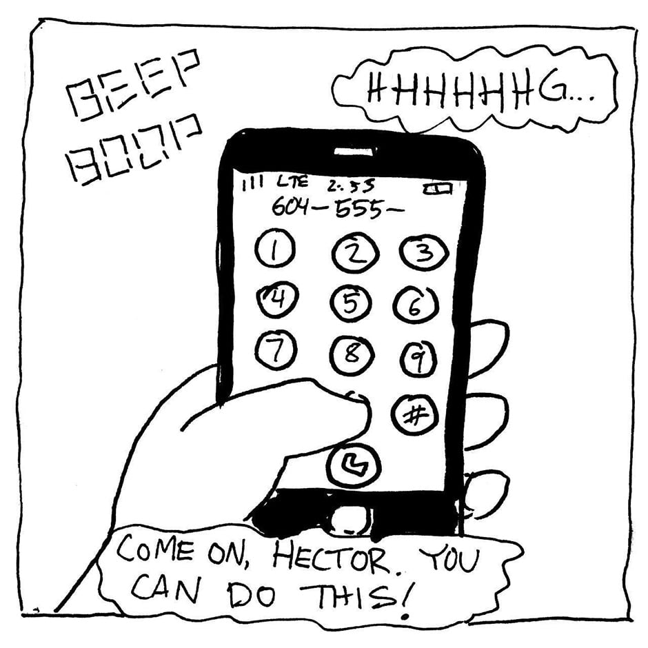 Phone anxiety.... with a healthy dose of misgendering. Poor Hector.