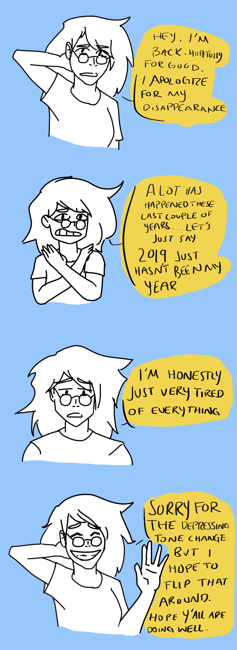 hello. i am back from the dead. wish i was actually dead lmao. how are y'all?