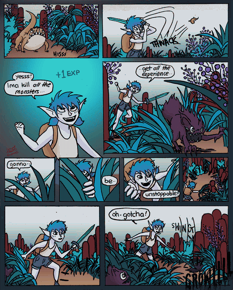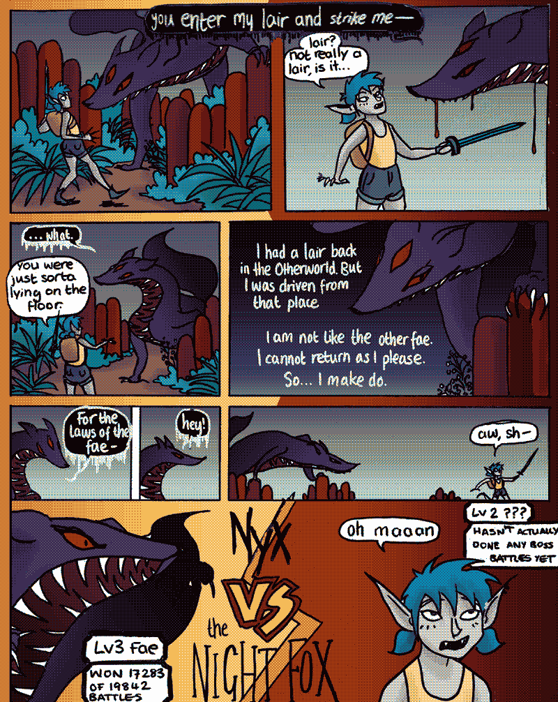 Fantasy adventure comics feat. Nyx, a kinda-magical loot-obsessed half-human half-something on a mum-saving quest that's mysteriously similar to a videogame. Ancient artefacts of great power, useless sidekicks, rad swords, a gathering darkness and sweet magic powers await.