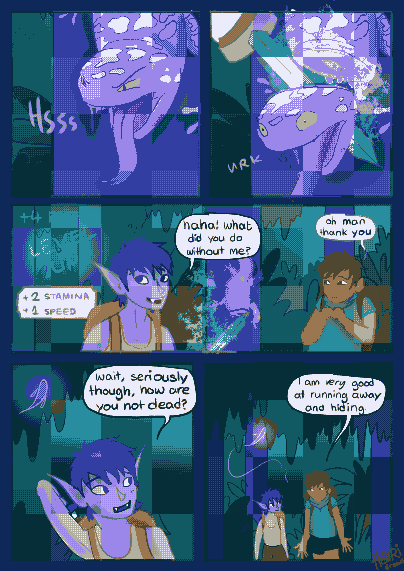 Fantasy adventure comics feat. Nyx, a kinda-magical loot-obsessed half-human half-something on a mum-saving quest that's mysteriously similar to a videogame. Ancient artefacts of great power, useless sidekicks, rad swords, a gathering darkness and sweet magic powers await.