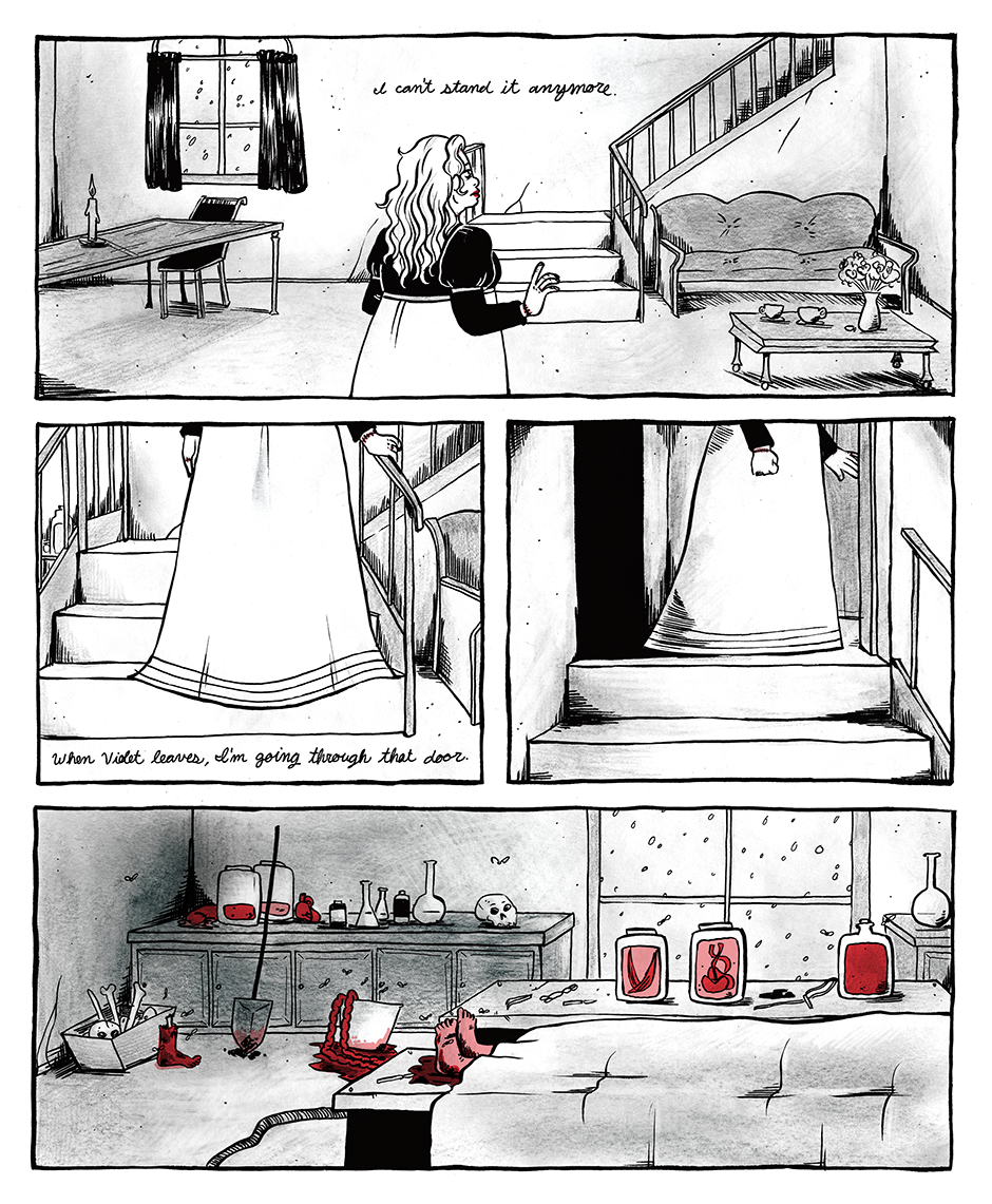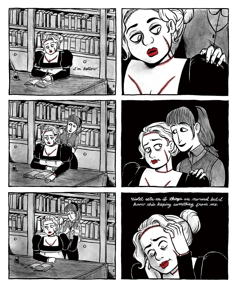 The Prometheite is a graphic novella reimagining Mary Shelley's Frankenstein as a lesbian tragedy. It follows the romance between Violet Schweitzer and Aveline Clerval, two young women in 19th century Ingolstadt.