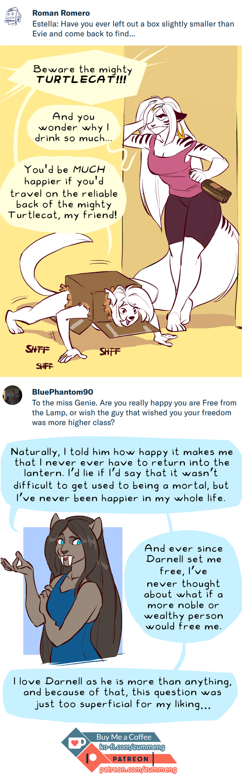 This is where you find all the short comics and Patreon Q&A pictures I make.