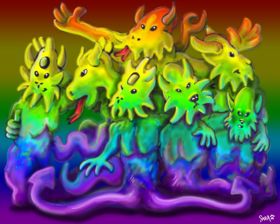 All seven of the rainbow serpents. They are chromatophores and can change colors nearly instantly. Here they are posed and just showing off how good they are at it!