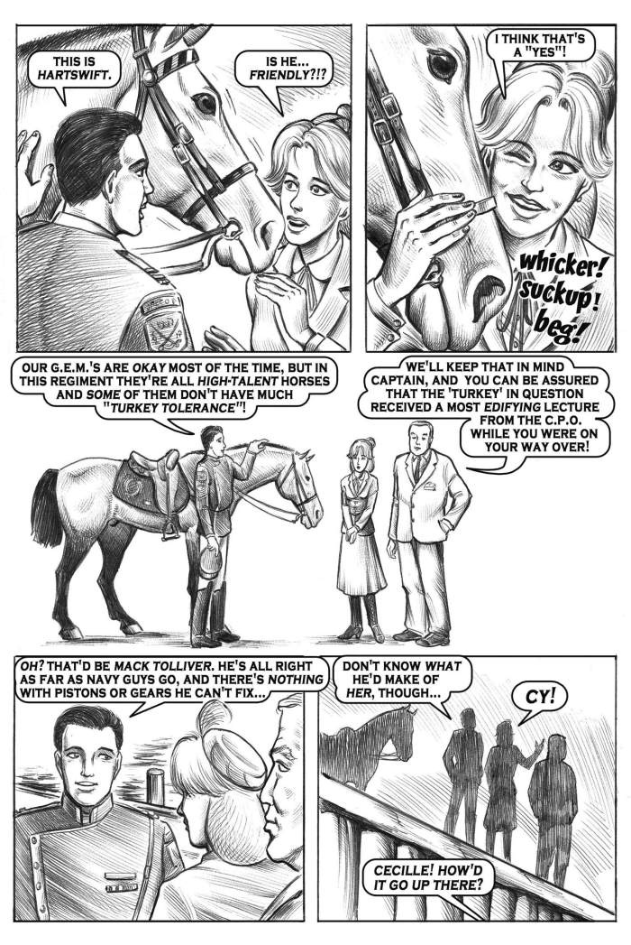 The divers settle into their temporary quarters, located on land shared with an elite cavalry unit. They learn the hard way that the battalion's transgenic horses don't appreciate being disrespected.