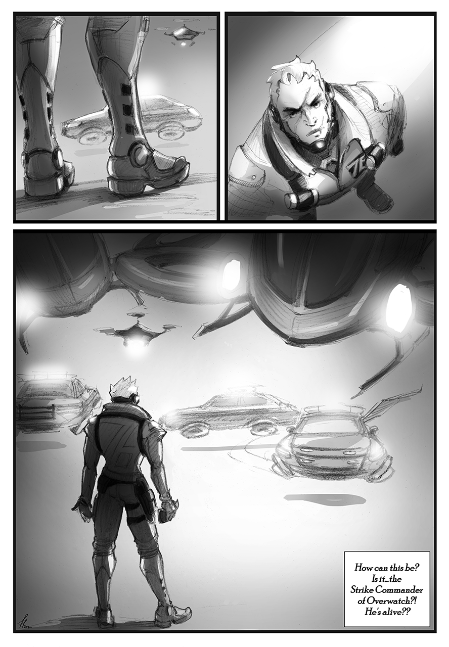 Having secured her promise he nods and turns his back to them. A sole broad-shouldered figure in the blinding flashlights – he takes up the whole scene, once again bearing the brunt and facing the consequences. Just like he used to do in the past. And isn’t it Strike Commander Morrison’s true purpose? To be the one who always takes the hit in order to protect the others. The selfless one. That is who he has to be now. And so he steps onto the stage, peels his visor off and looks up, revealing his face for those lusting to blame and to label.
